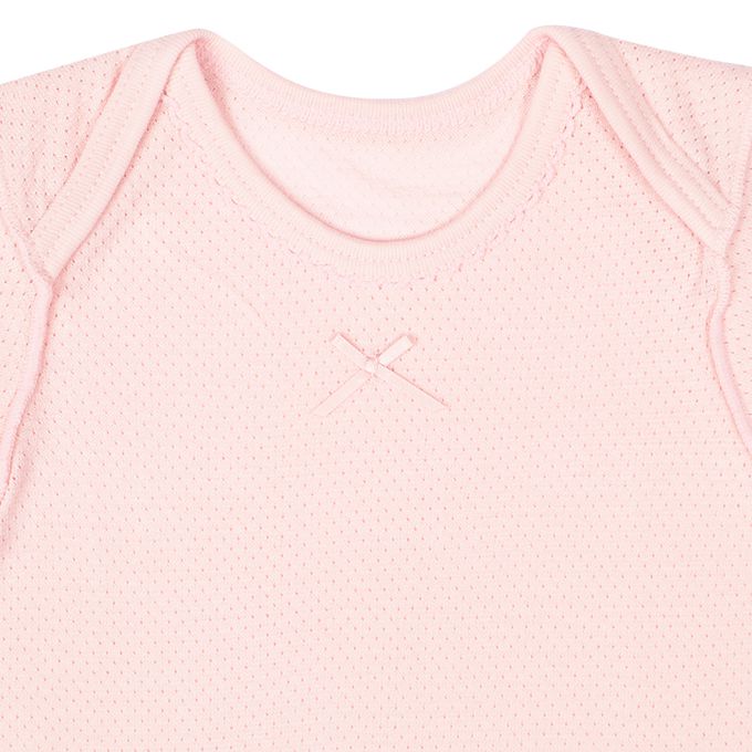 短袖網眼包屁衣2件組-套頭式 小花-粉紅色