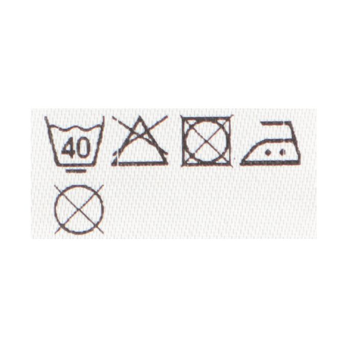 注意事項:●標示內容遵照台灣法規之規定。●請使用不含螢光增白劑的洗劑。●請勿熨燙釦子部分。●熨燙請使用墊布。