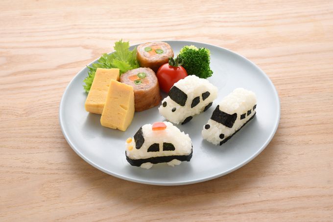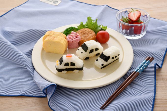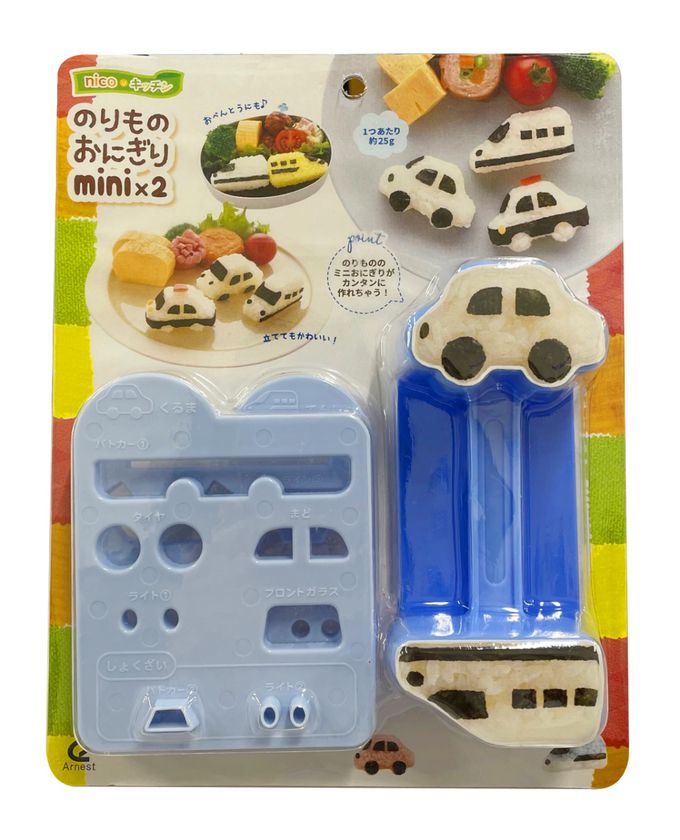 詳細尺寸:(約・ cm)=飯糰壓模:寬6×深13.5×高2.5、切割器:汽車/長11×寬8.5×高1.5、電車/長11×寬8.5×高0.8、切割墊:長5.5×寬9×高0.3●組合內容/飯糰壓模(本體、壓模2種)、切割器(汽車・電車)各1個、切割墊1個
