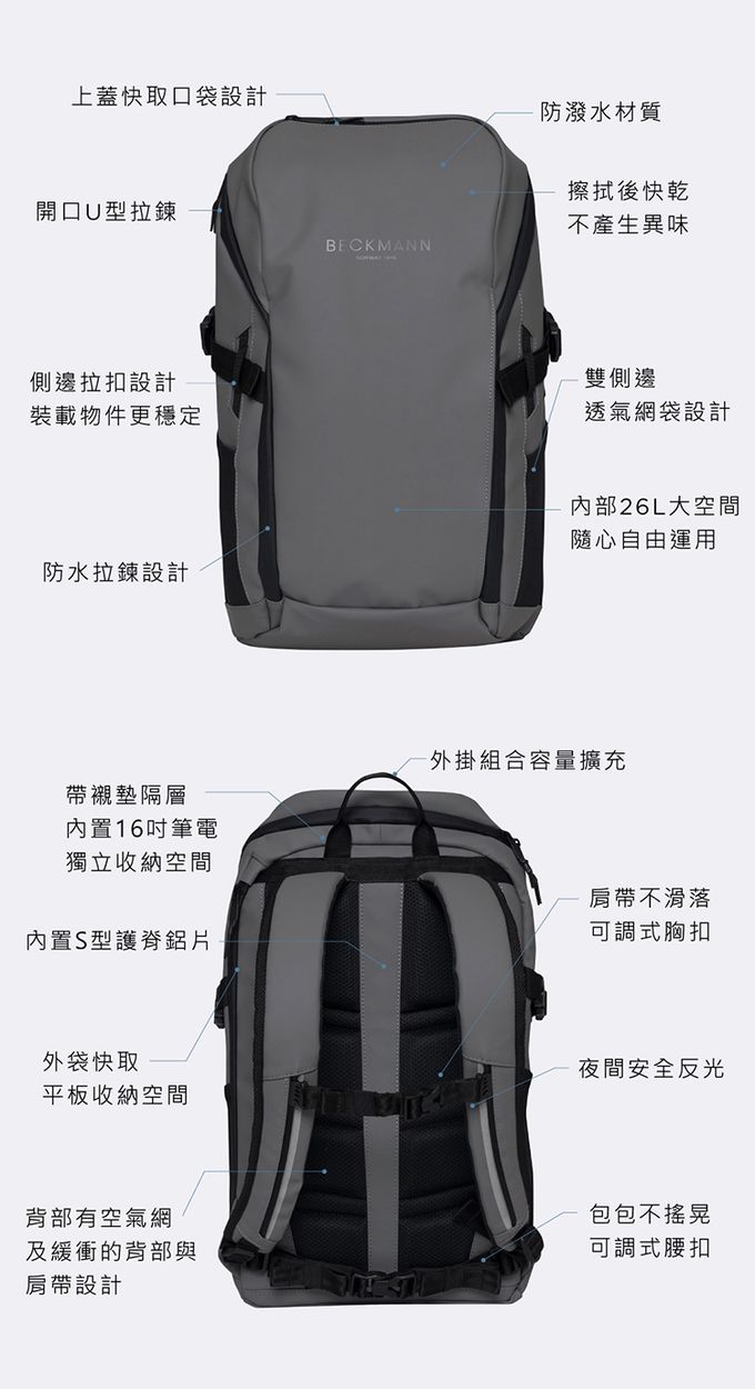 品名:Street Go 街頭護脊背包 26L - 極限灰 2.0