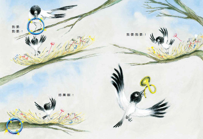 小喜鵲每樣東西都要,卻又馬上厭煩。