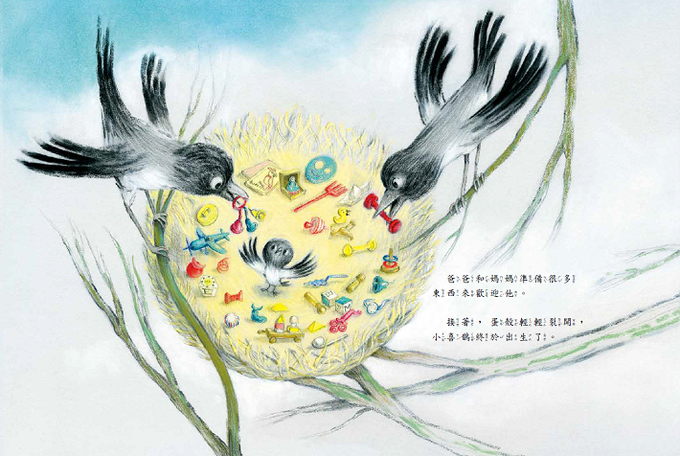 爸爸媽媽準備很多禮物迎接小喜鵲出生,