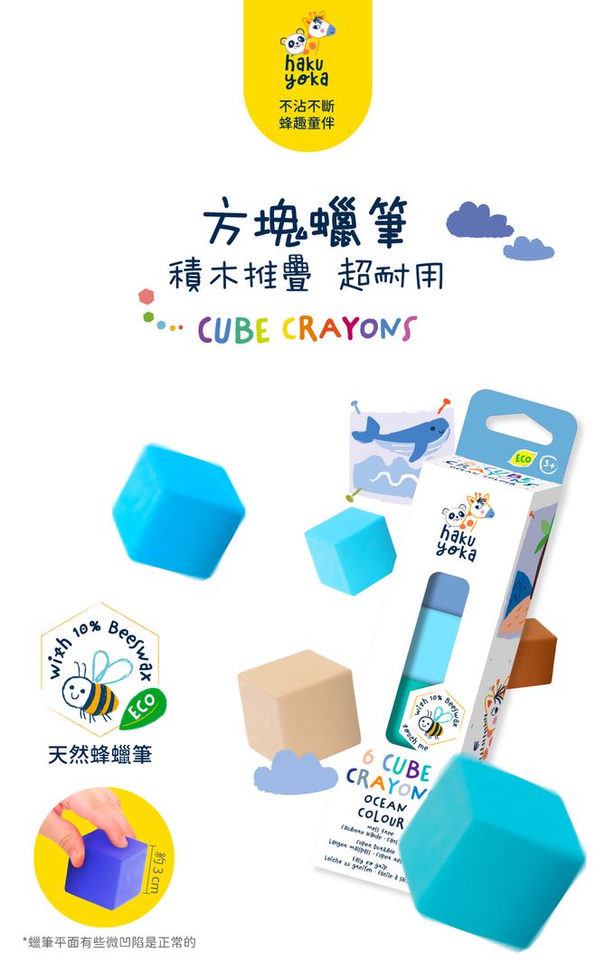 Haku Yoka 的每一個產品都經過精心設計,以誘發創意的造型,及安全配方,讓孩子們能盡情創作,父母安心無慮。為了塗鴉期孩子所設計的安全蠟筆,以天然蜂蠟製成、色彩鮮艷、堅固耐玩不沾手、易清洗、無毒無臭,獨特造型好抓握。