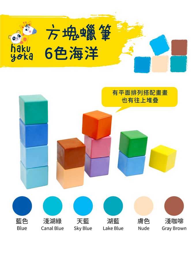 ※ 品名:方塊蠟筆, 彩虹/海洋 6 色