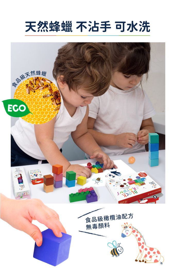 方塊積木蠟筆二合一,堆疊、建構、顏色形狀認知、畫圖上色、說故事,迸出更多創意玩法!