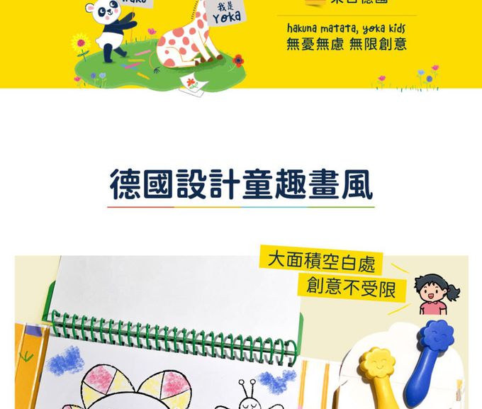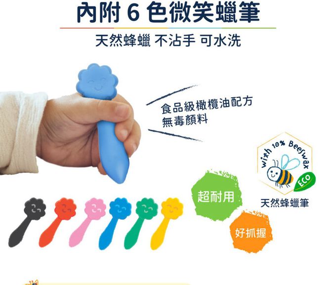 孩子愛在不同地方畫畫,這套「啟蒙畫冊組」,內含 35 頁德國童趣插畫著色紙、29 張貼紙、及 6 隻天然無毒蜂蠟筆,方便孩子隨時隨地發揮創意。