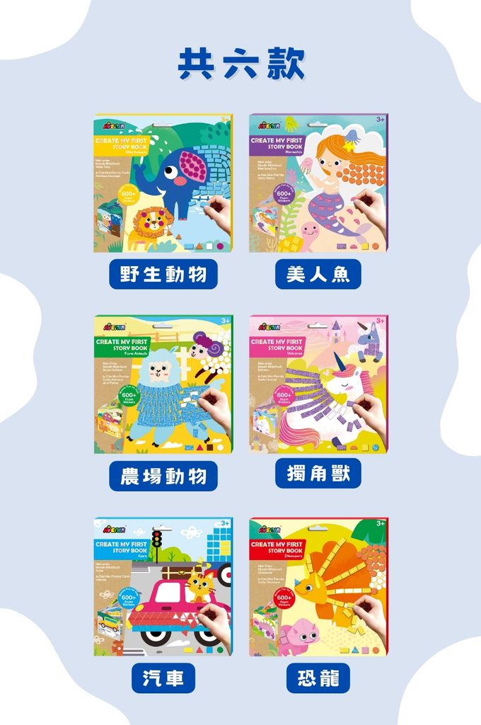 我的第一本馬賽克貼紙故事書-獨角獸/美人魚/野生動物/農場動物/恐龍/汽車