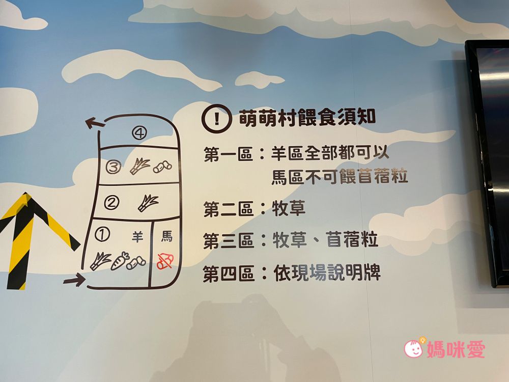 每種動物可吃的飼料不同,每個區域都有清楚的告示牌標示,告訴遊客該餵哪種食物,告示牌的圖示也設計得很清楚,小朋友能自己看懂,柳橙就超認真地一張一張看,確認食物是不是可以餵的,這點設計得很不錯!