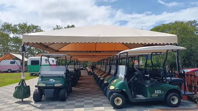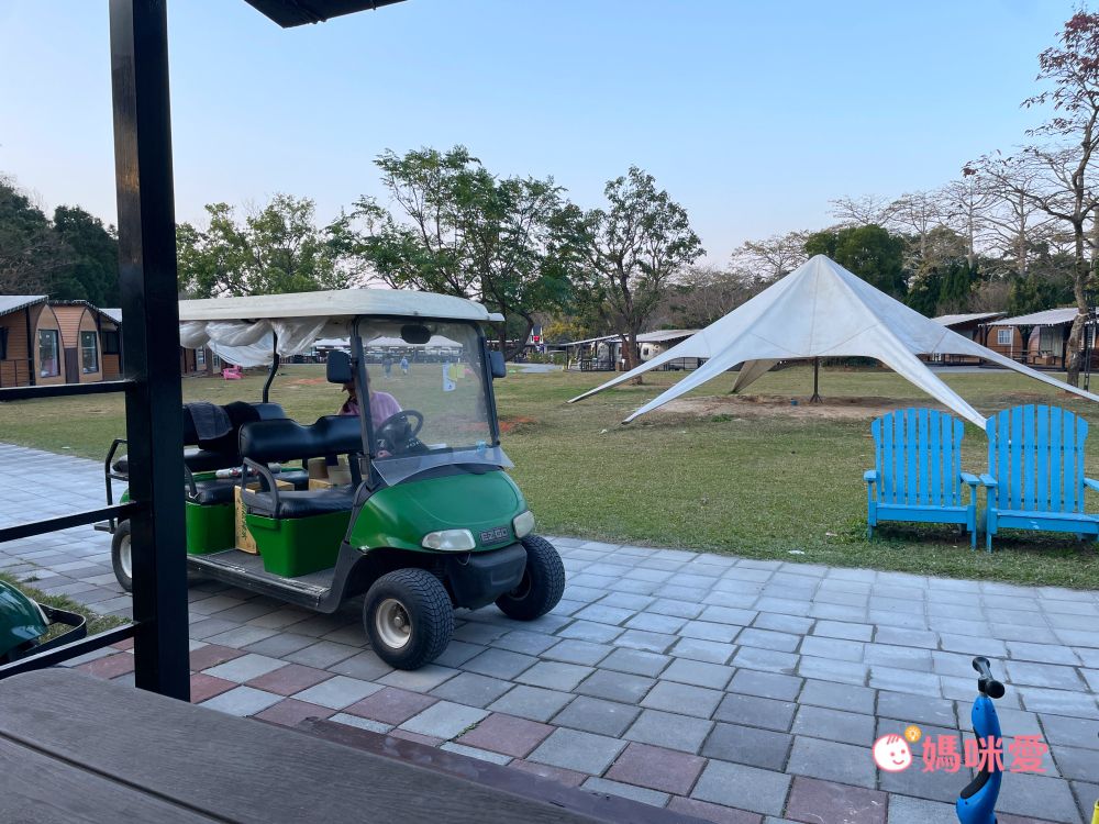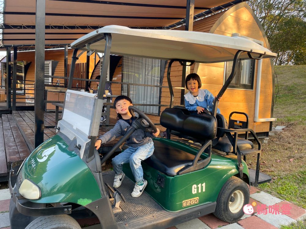 Check in完就去領電動車,可以說是我個人 最最最喜歡的點!這真的太加分了吧!進房、退房時可以輕鬆載行李,直接開到帳篷旁邊,完全不必辛苦扛大包小包,爸媽都知道,帶小孩總是大包小包的啊…而且這台電動車還能開進農場,整個園區都可以輕鬆兜風,媽媽我真的超愛,省時、省力、省腳力,根本超讚!