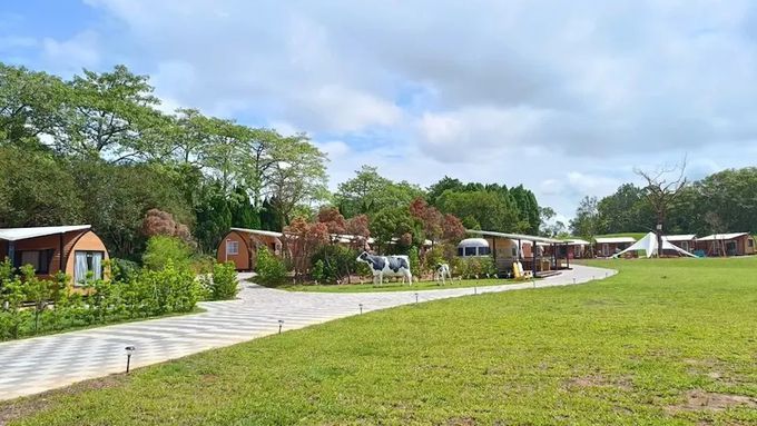 位在埔心牧場的牛仔星村,有獨特的大片落地窗設計,免出車屋就能感受到開闊的藍天綠地放鬆感!