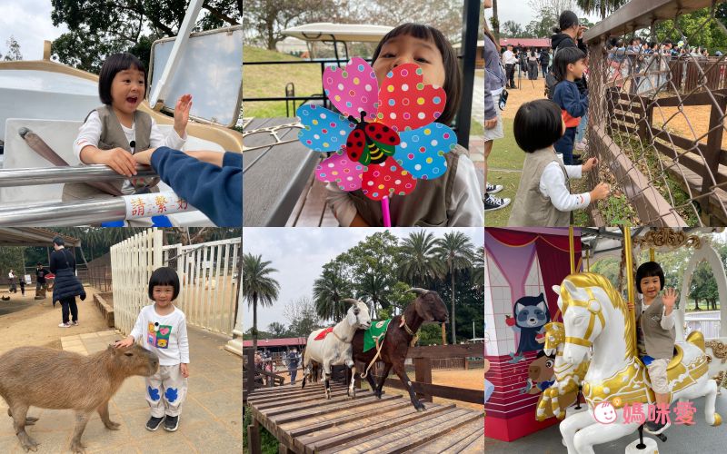 因為四人房有四張餵食券,所以我們今天又再去餵了一輪牧草,動物們依舊熱情不減。接著,我們還去了萌萌村對面的「萌豚樂園」,玩了三個設施,票價是$150/人(不含在住宿券內),小朋友玩得超開心,這區也很適合愛跑跑跳跳的小孩。