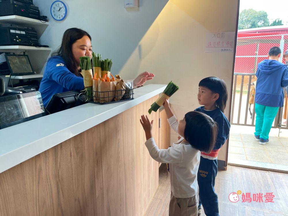 不過,整體餵下來發現大部分的動物都可以吃牧草,所以建議直接都換牧草就好,最實用、數量也最多。去過那麼多牧場,從來沒拿過這麼大一捆牧草,份量超有誠意,真的可以讓小朋友餵好餵滿,待在這區超久!