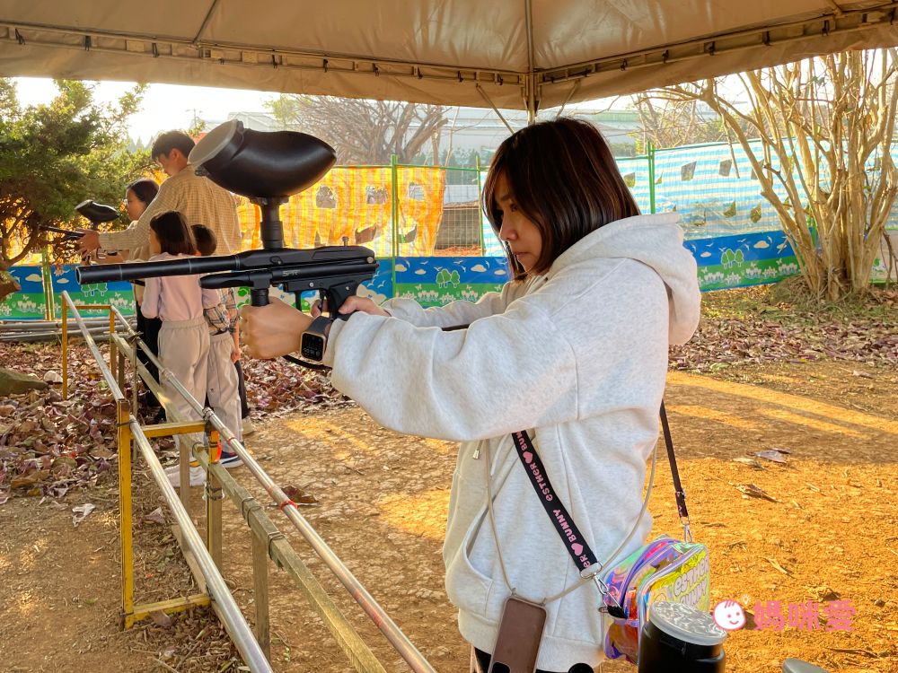 趁他們午睡,我偷偷溜去體驗入住禮裡的「漆彈定靶射擊」,這是牛仔星村的限定活動,只有入住當天的指定時段才能玩,所以一定要把握時間。我就趁這個機會享受一下難得的安靜時光,把小孩丟給姐妹顧(笑)。
