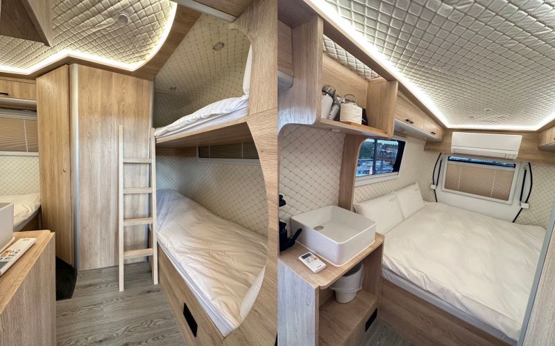 房內是配置一張雙人床和一張上下鋪喔!不過因為空間有限,上下舖僅限150cm、50kg以下入住喔~大約是10歲以下的兒童,超過的話建議入住牛仔帳篷會最舒適寬敞喔!
