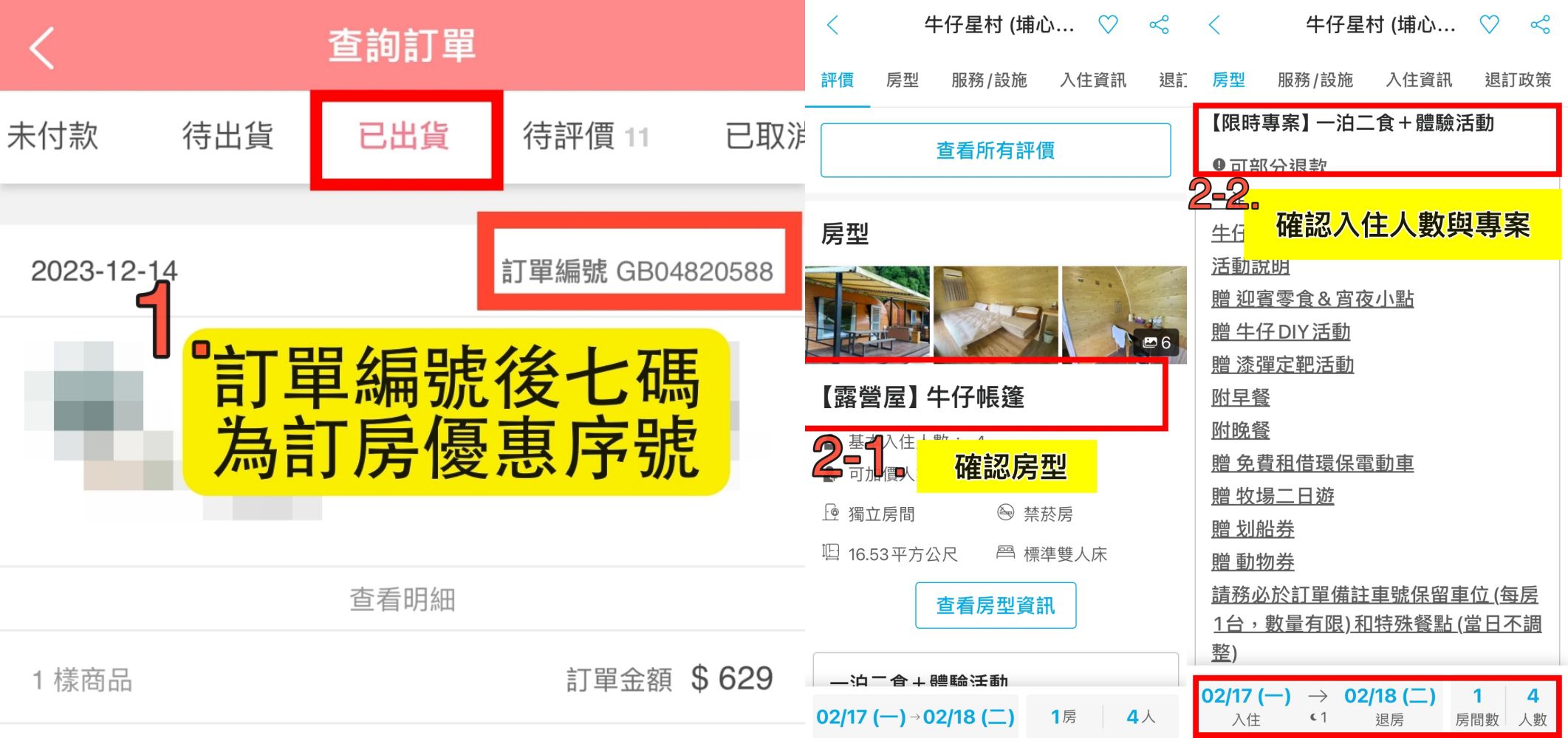 ※ 步驟2 待訂單完成付款,約1-3個工作天後,媽咪愛訂單將顯示「已出貨」,屆時表示優惠序號已開通,才可開始訂房喔。