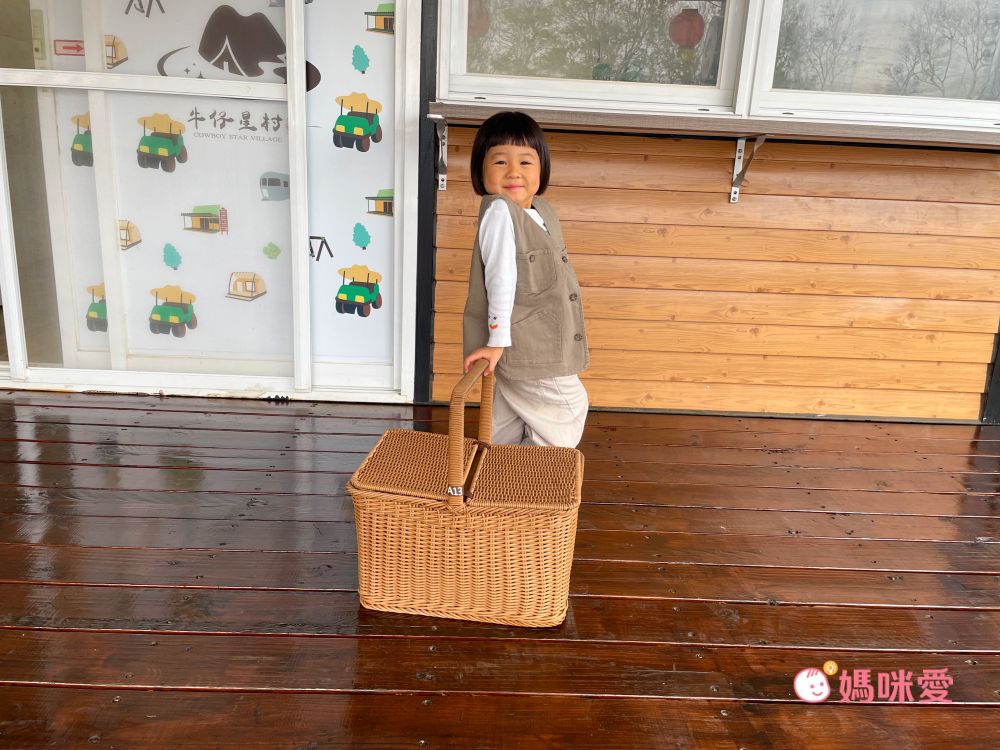 隔天早上,直接提著野餐籃,到「牛仔早餐屋」領早餐!柳橙賣力的搬著這個比他還大的野餐籃去拿早餐,畫面超好笑但也超可愛。