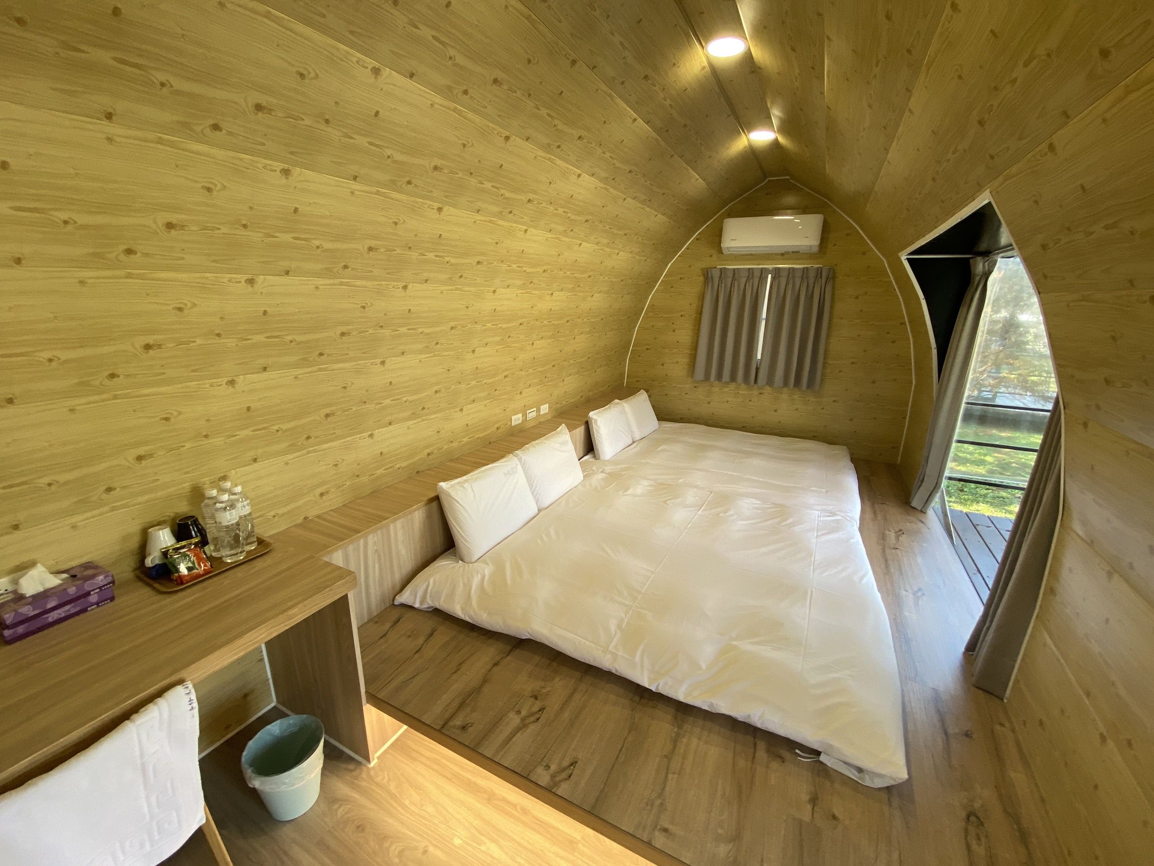 獨立衛浴。一張標準雙人床(160x200cm)、一張上下舖(70x190cm,限150cm/50kg以下兒童入住),超過此限請選擇牛仔帳篷房型。