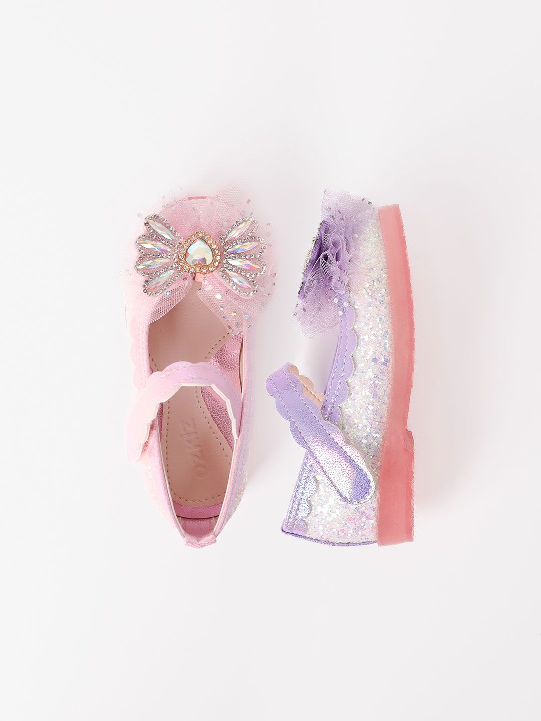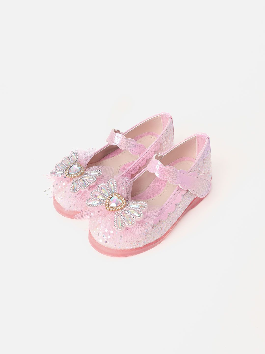韓國 OZKIZ - 精緻鑽石蝴蝶結亮片皮鞋-粉