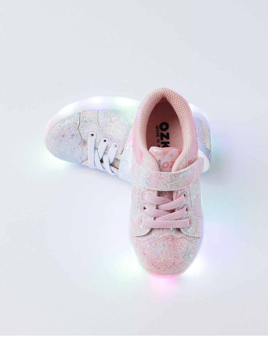 韓國 OZKIZ - (LED)夢幻亮片魔鬼氈運動鞋