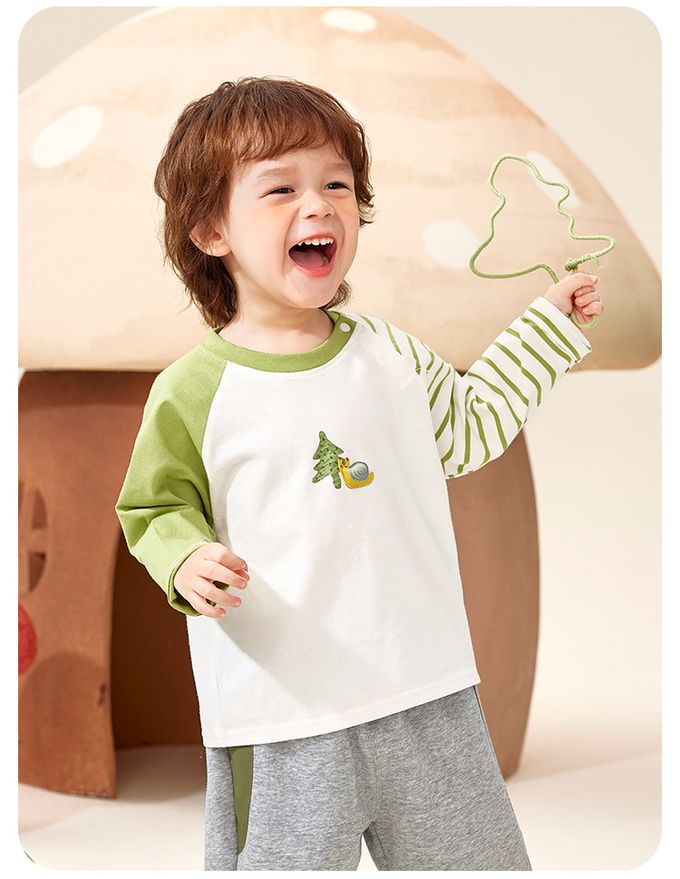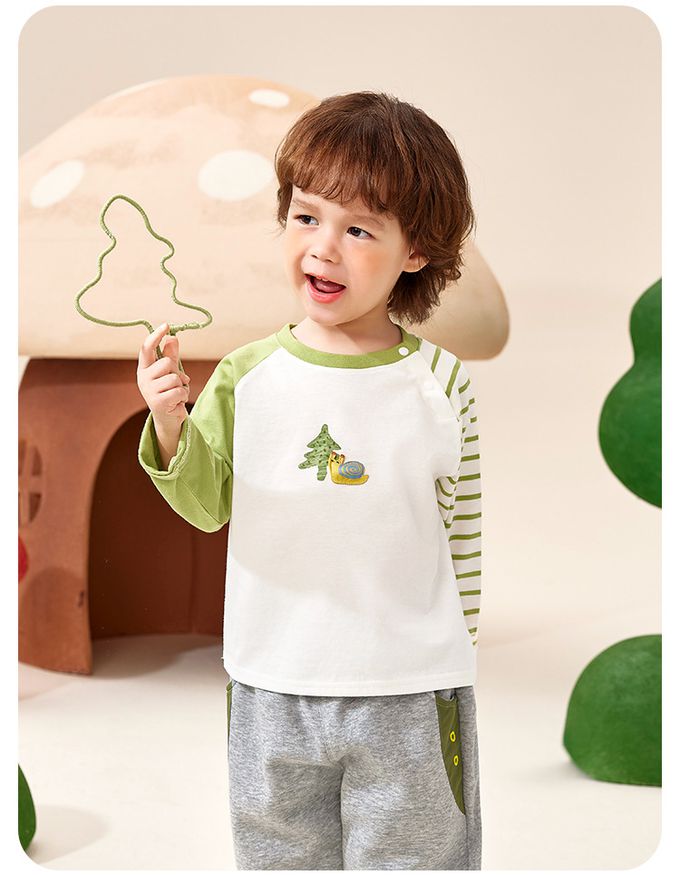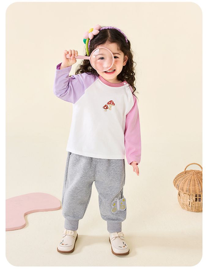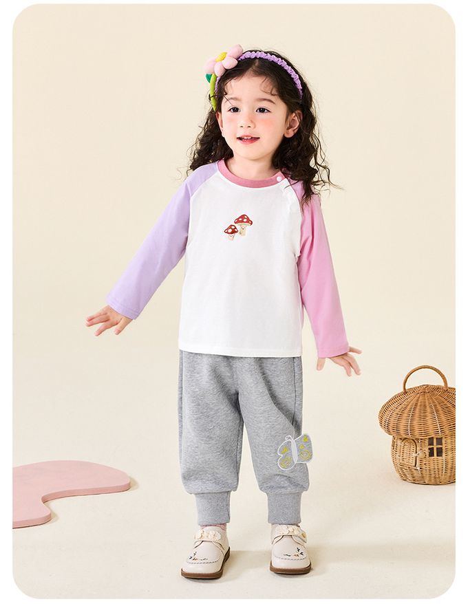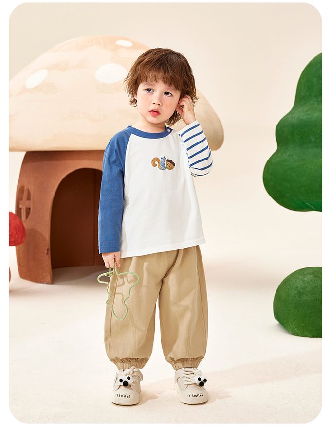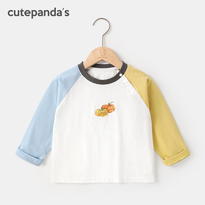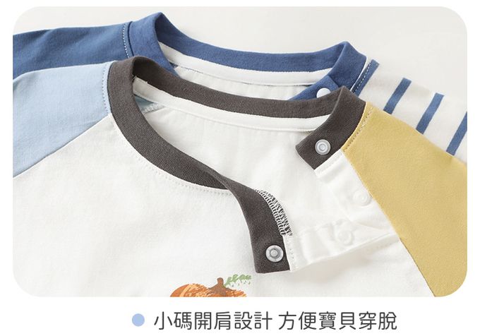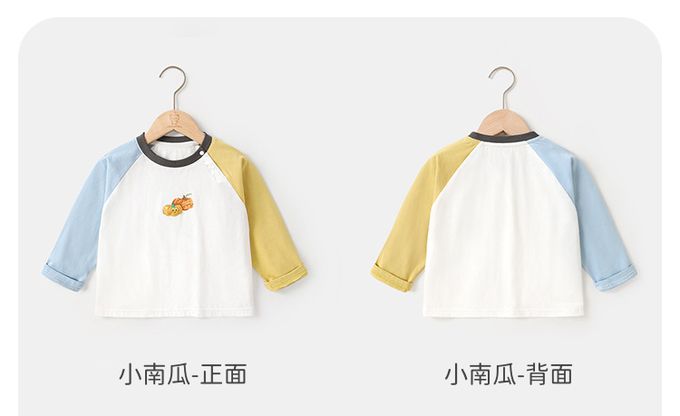 純棉圓領長袖上衣-小南瓜-黃藍拼色
