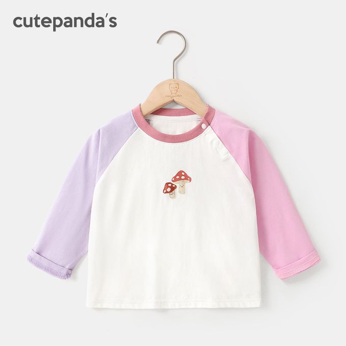 純棉圓領長袖上衣-小蘑菇-粉紫拼色