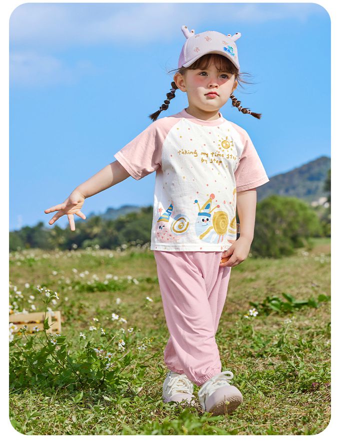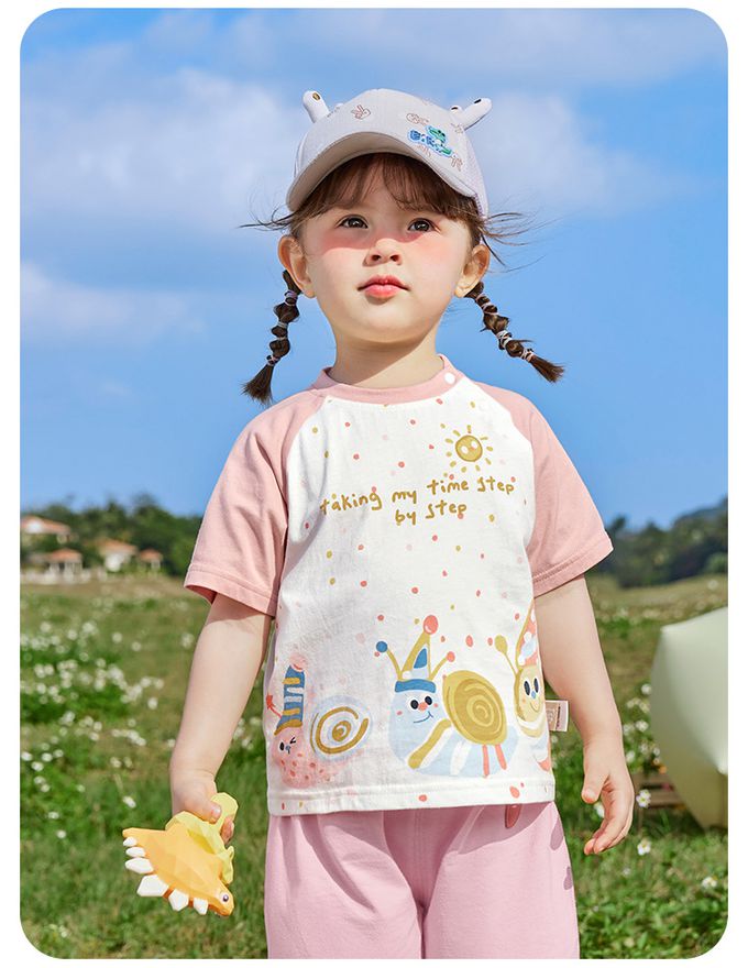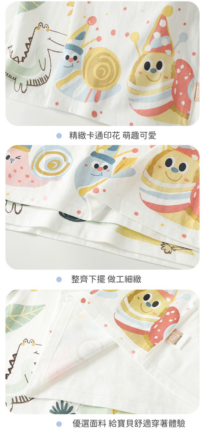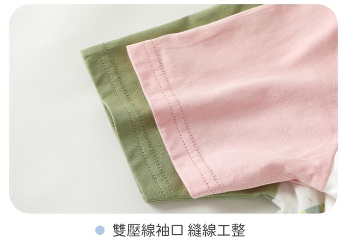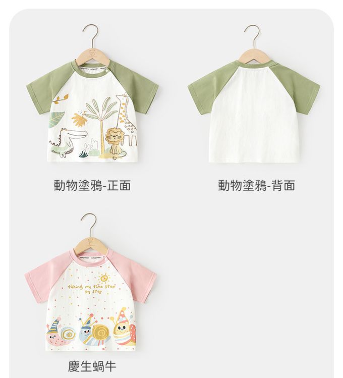 純棉圓領短袖上衣-動物塗鴉-綠色拼袖