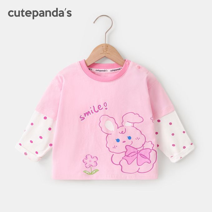 CUTEPANDA'S - 純棉圓領假兩件長袖上衣-快樂兔兔-黃色