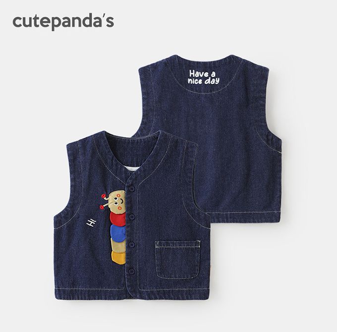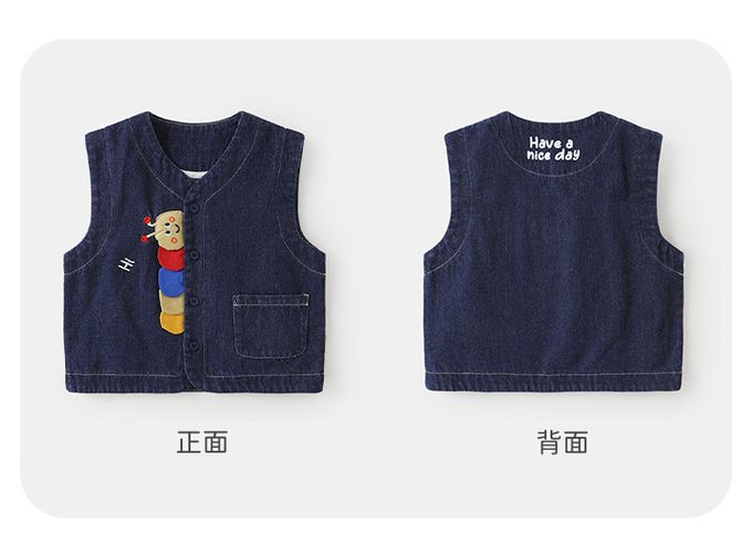 百搭牛仔背心-彩色毛毛蟲-藍色
