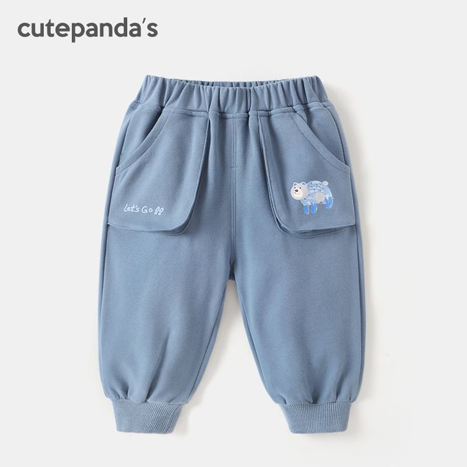腰鬆緊運動休閒長褲-立體口袋-藍色