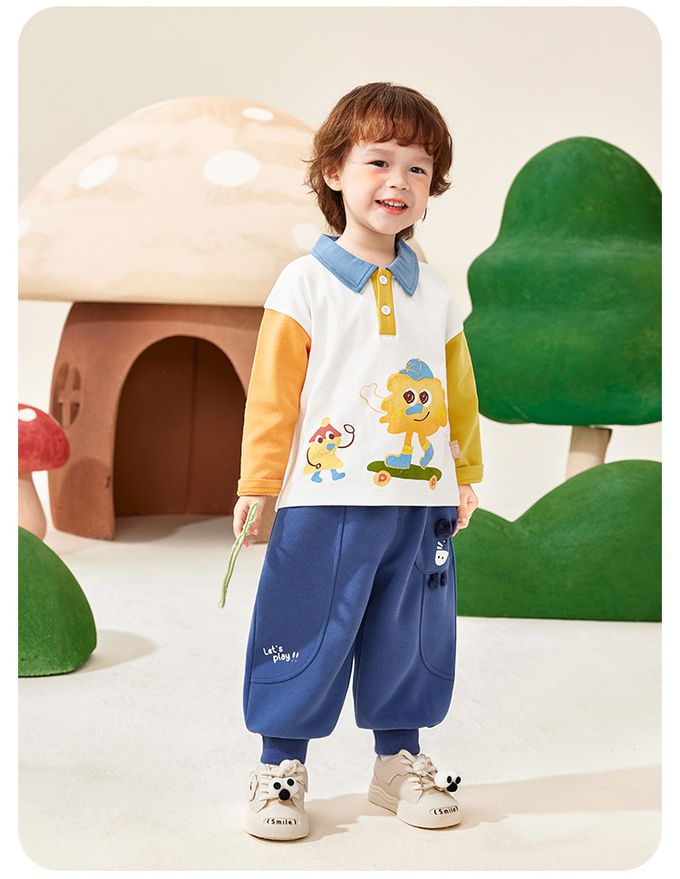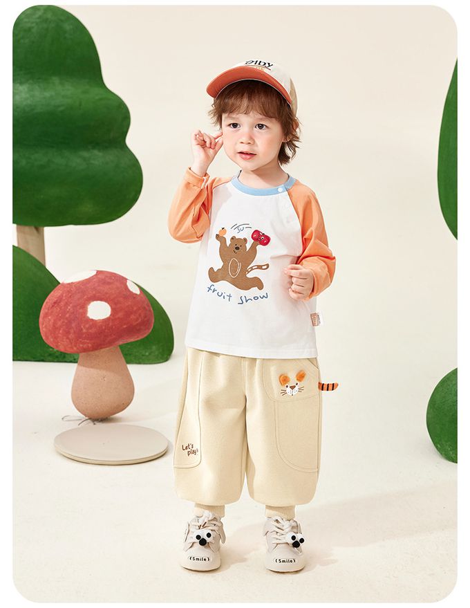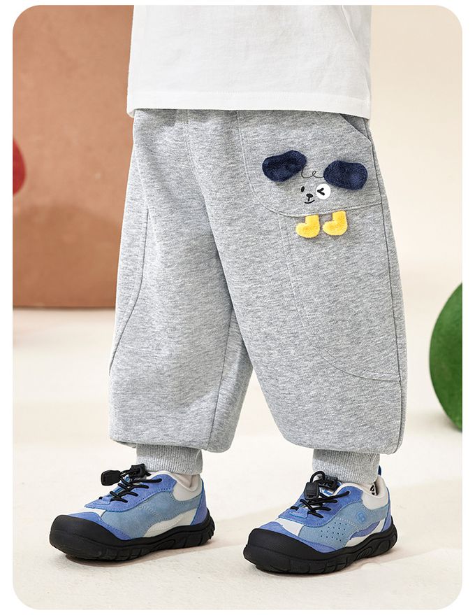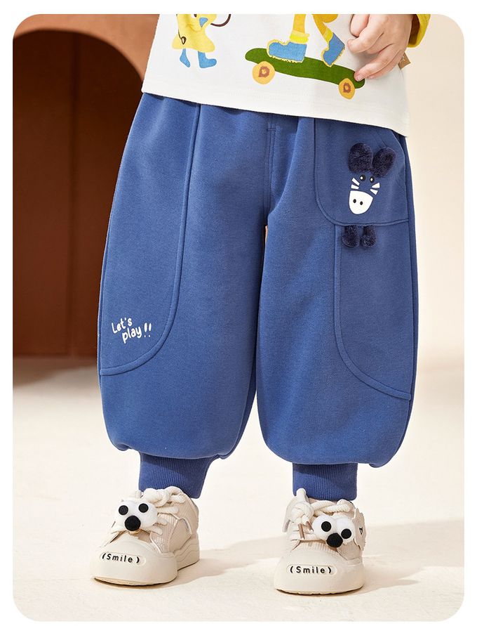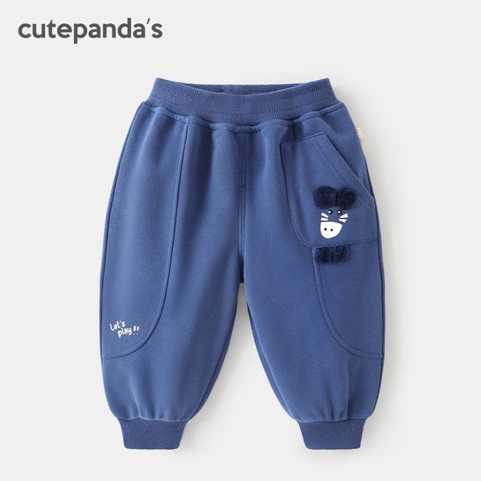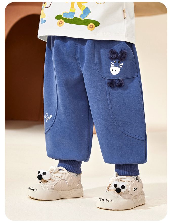 腰鬆緊運動休閒長褲-立體動物造型-藍色
