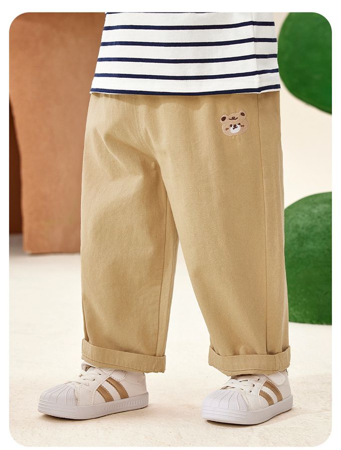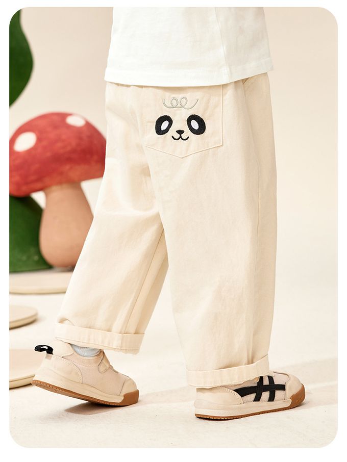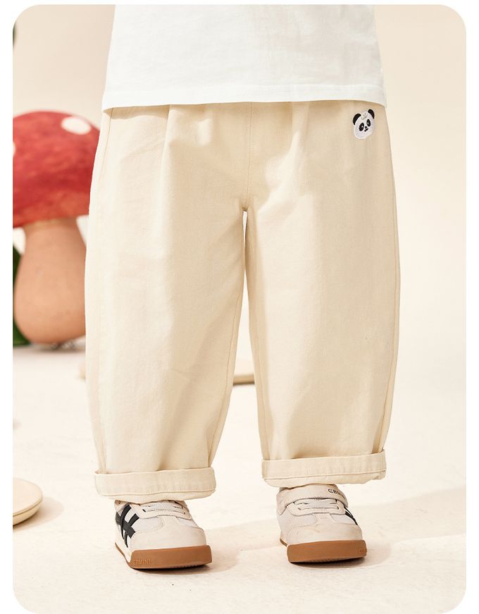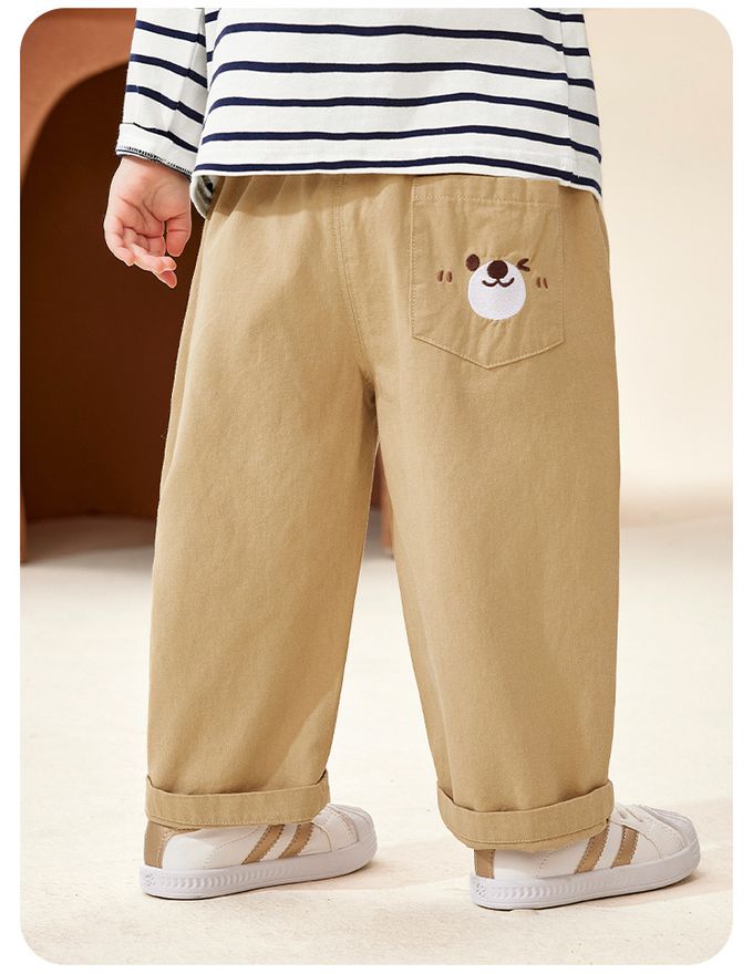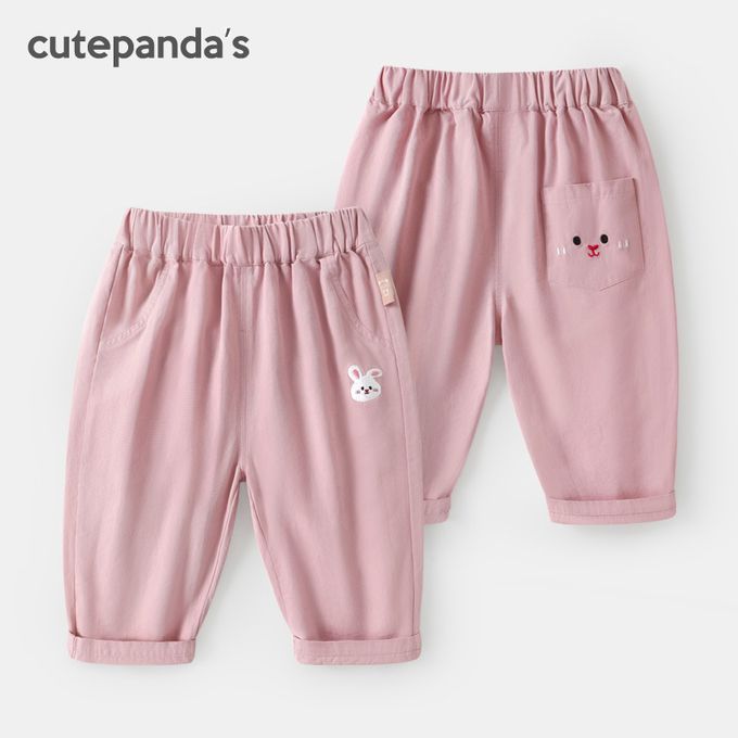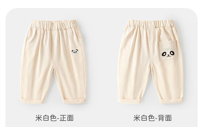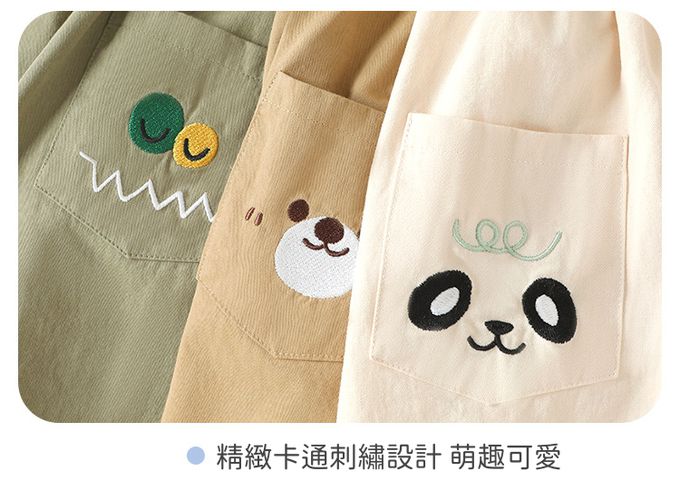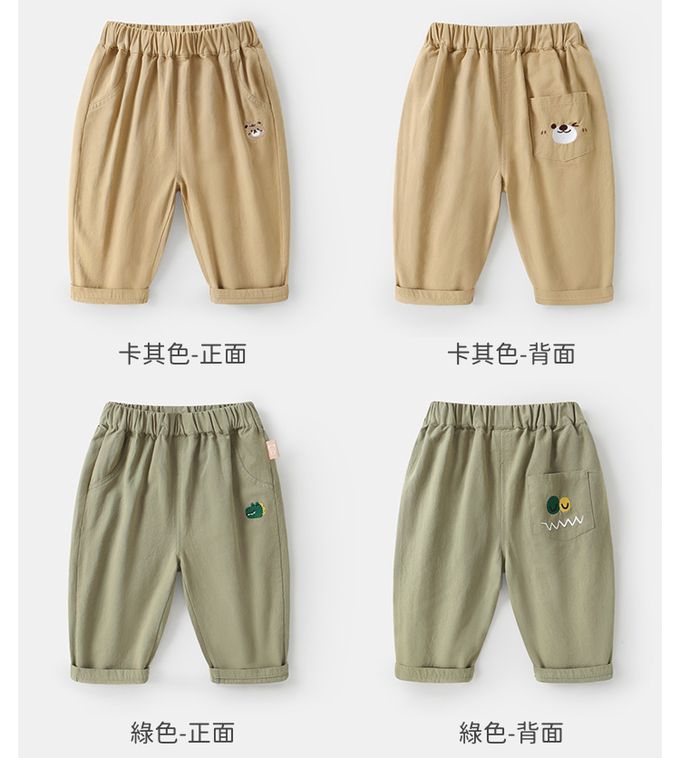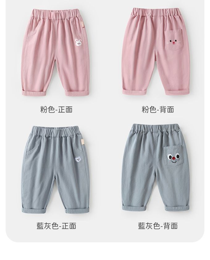 純棉腰鬆緊休閒長褲-後童趣繡花口袋-粉色