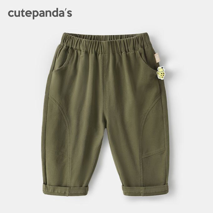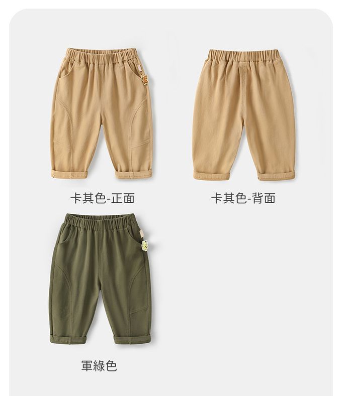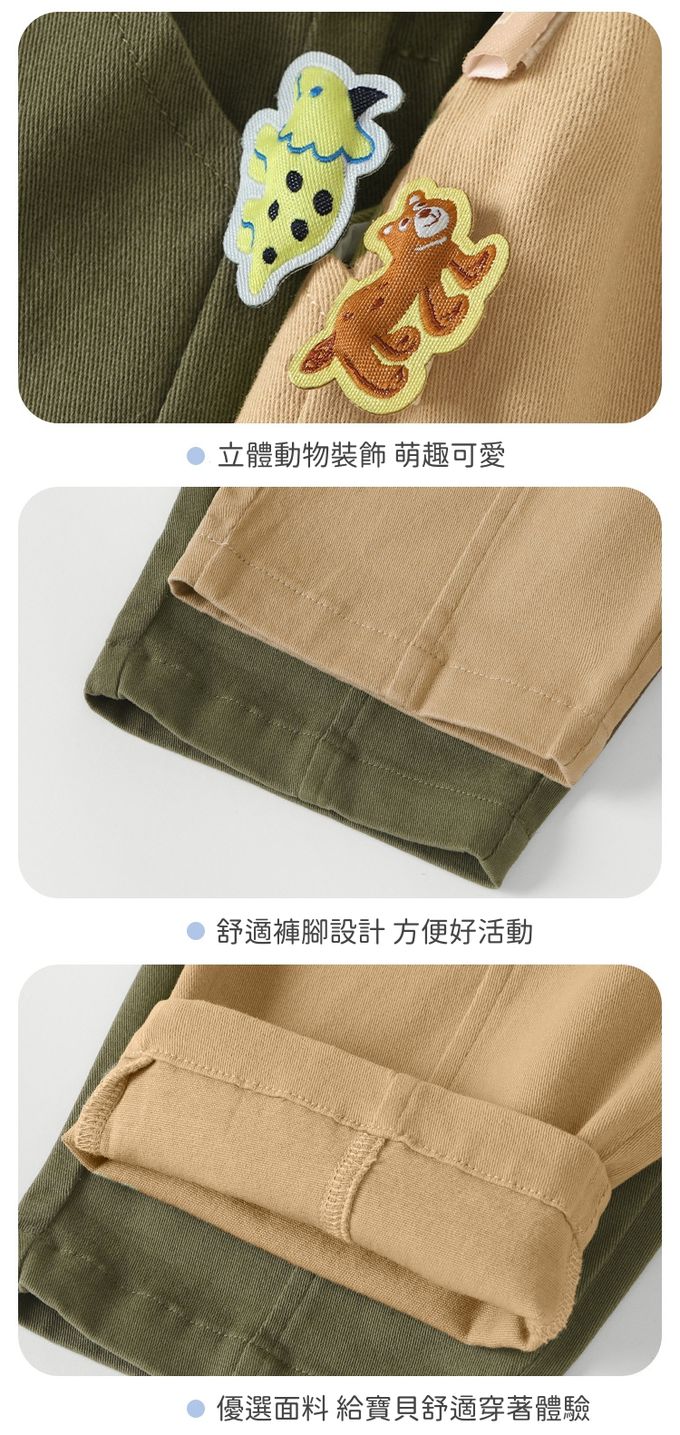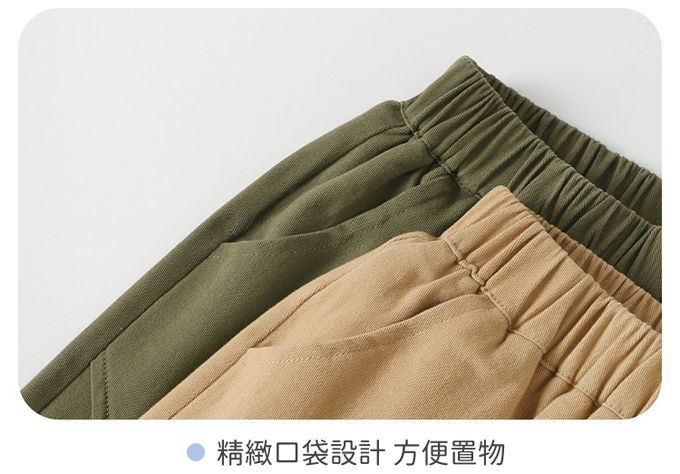 腰鬆緊百搭休閒長褲-澎澎立體裝飾-軍綠色