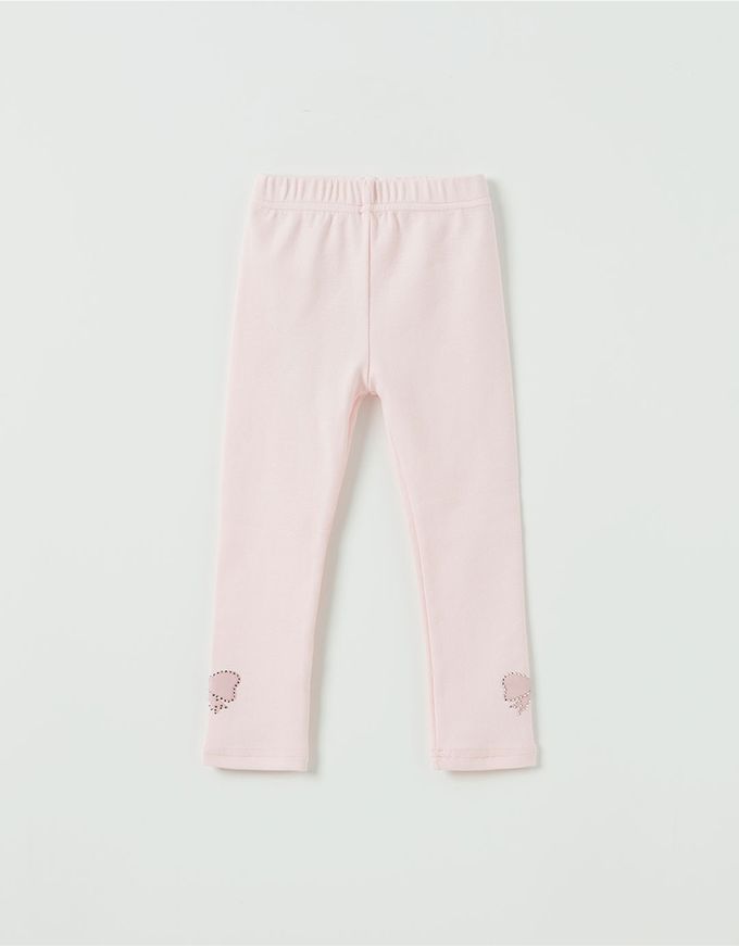 韓國 OZKIZ - 鬆緊腰水鑽蝴蝶結裝飾彈力內搭褲-粉
