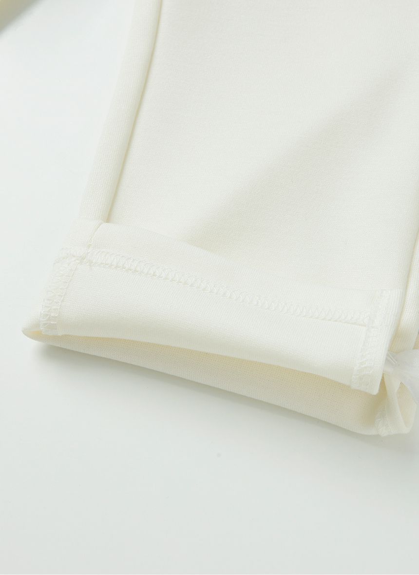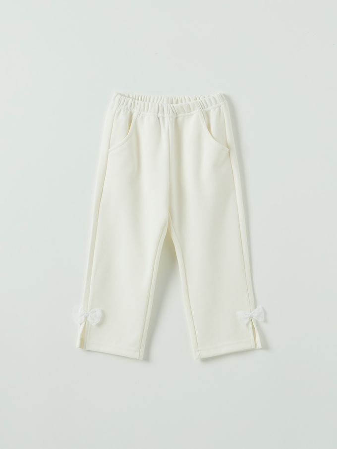 韓國 OZKIZ - 鬆緊腰網紗蝴蝶結點綴開衩長褲-白