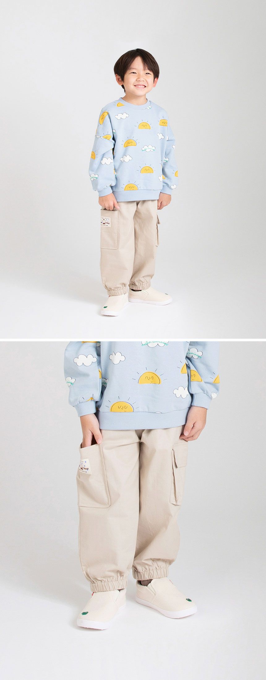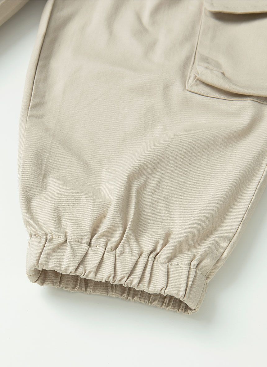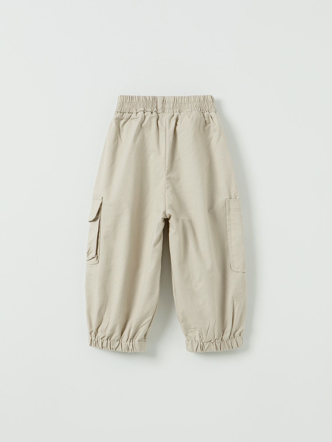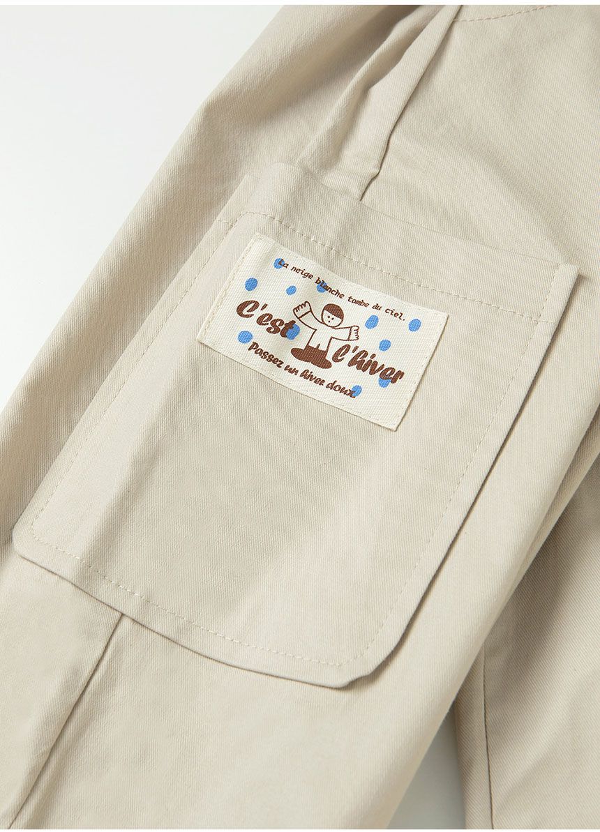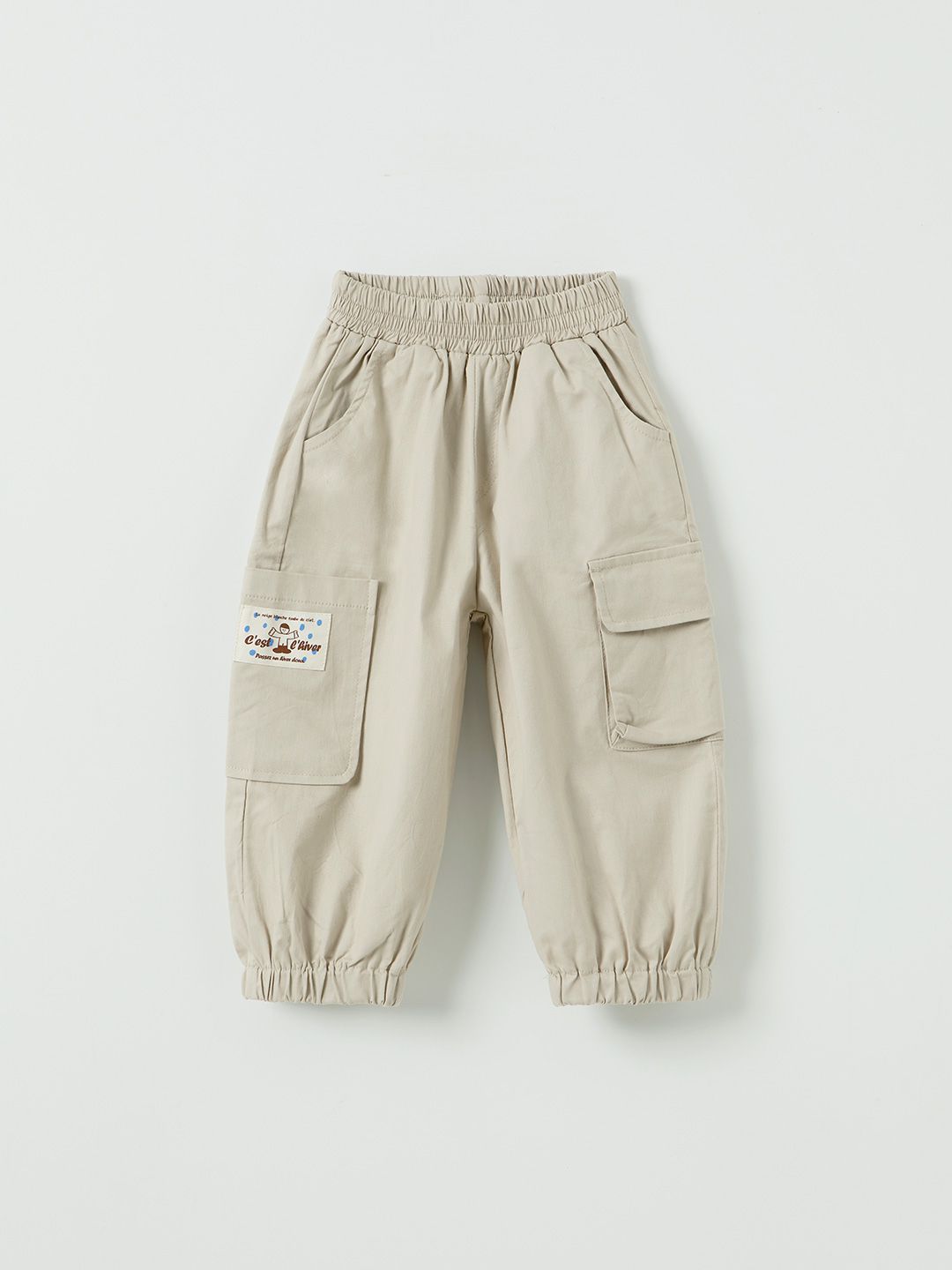韓國 OZKIZ - 鬆緊腰插畫補丁裝飾縮口長褲-卡其