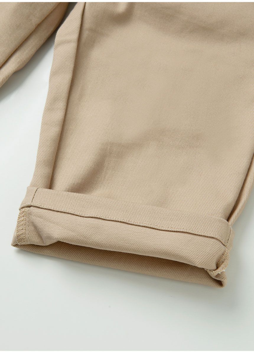 韓國 OZKIZ - 鬆緊帶簡約寬鬆休閒長褲-卡其