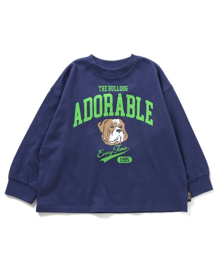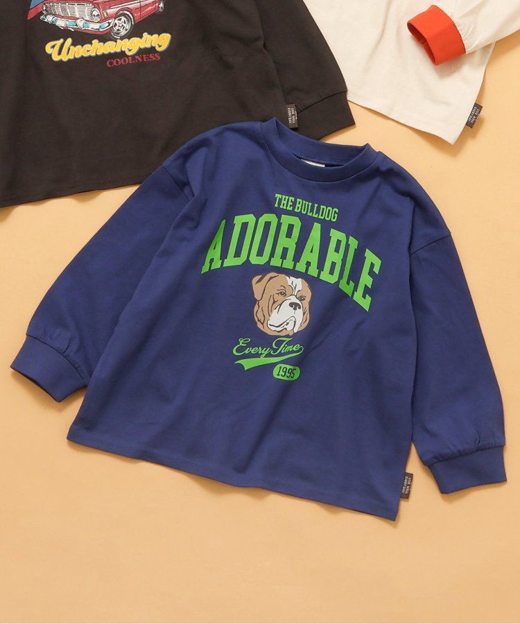 日本 BREEZE - 美式印花薄長袖上衣-沙皮狗-海軍藍