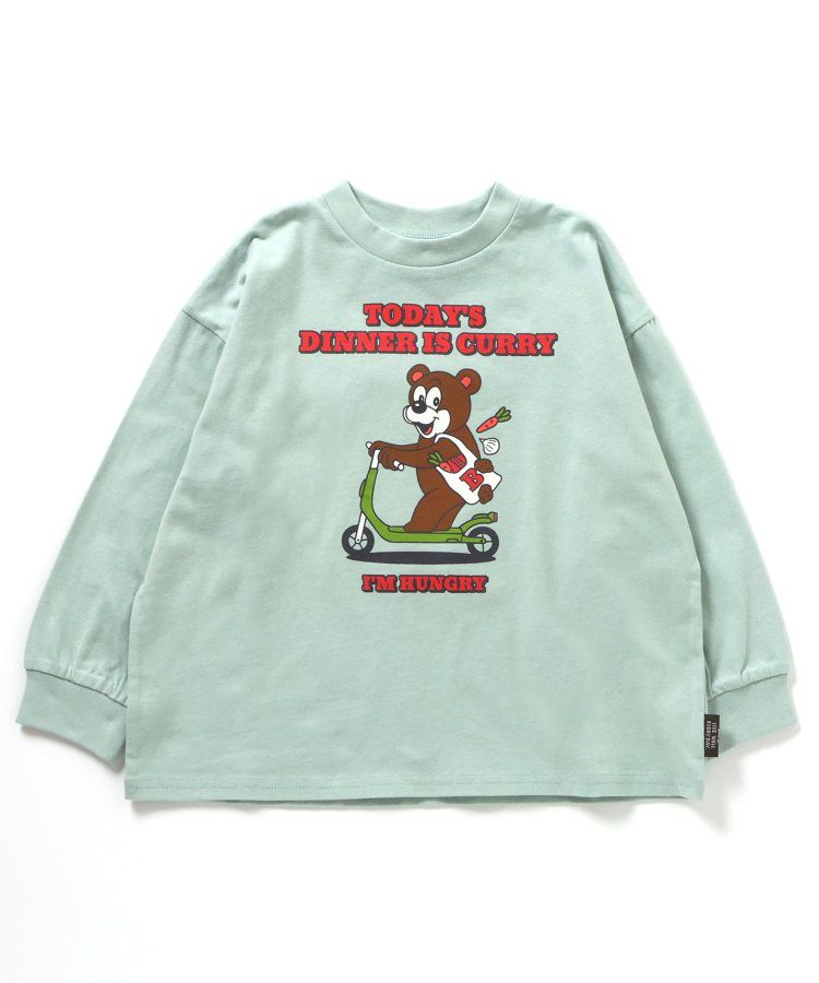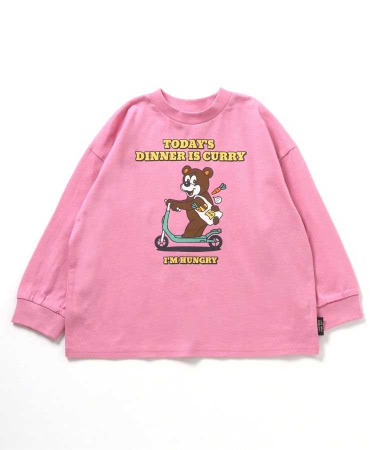 日本 BREEZE - 美式印花薄長袖上衣-滑板車熊熊-粉紅