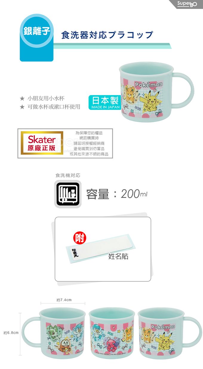 日本 SKATER - 銀離子小牛奶杯-寶可夢典藏款黑-200ml