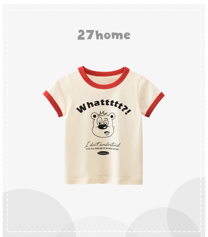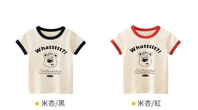 純棉短袖上衣-疑惑小熊-米杏/紅