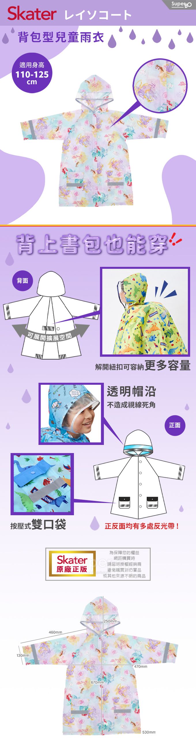 背包型兒童雨衣-迪士尼公主