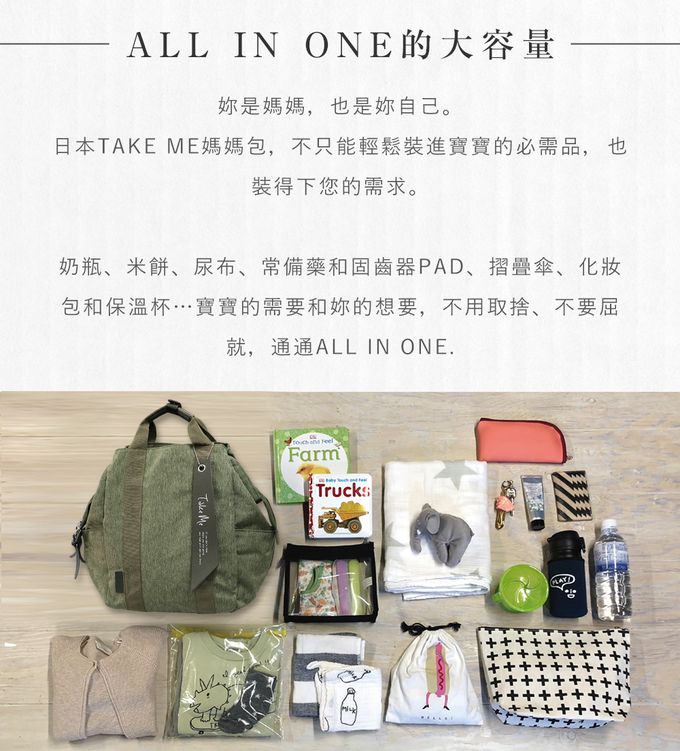 大容量設計,輕鬆放入妳和寶寶的必需品。