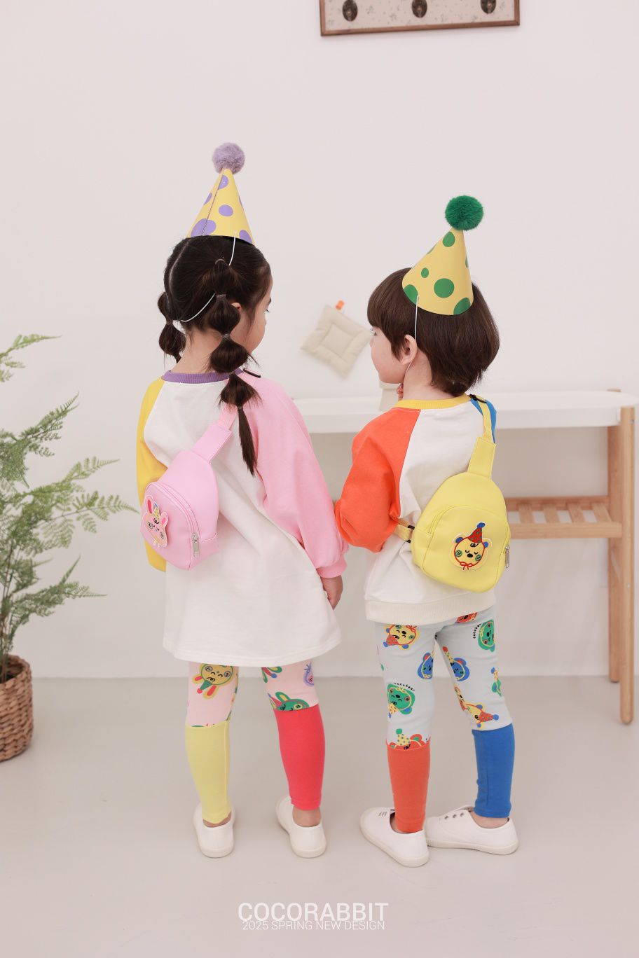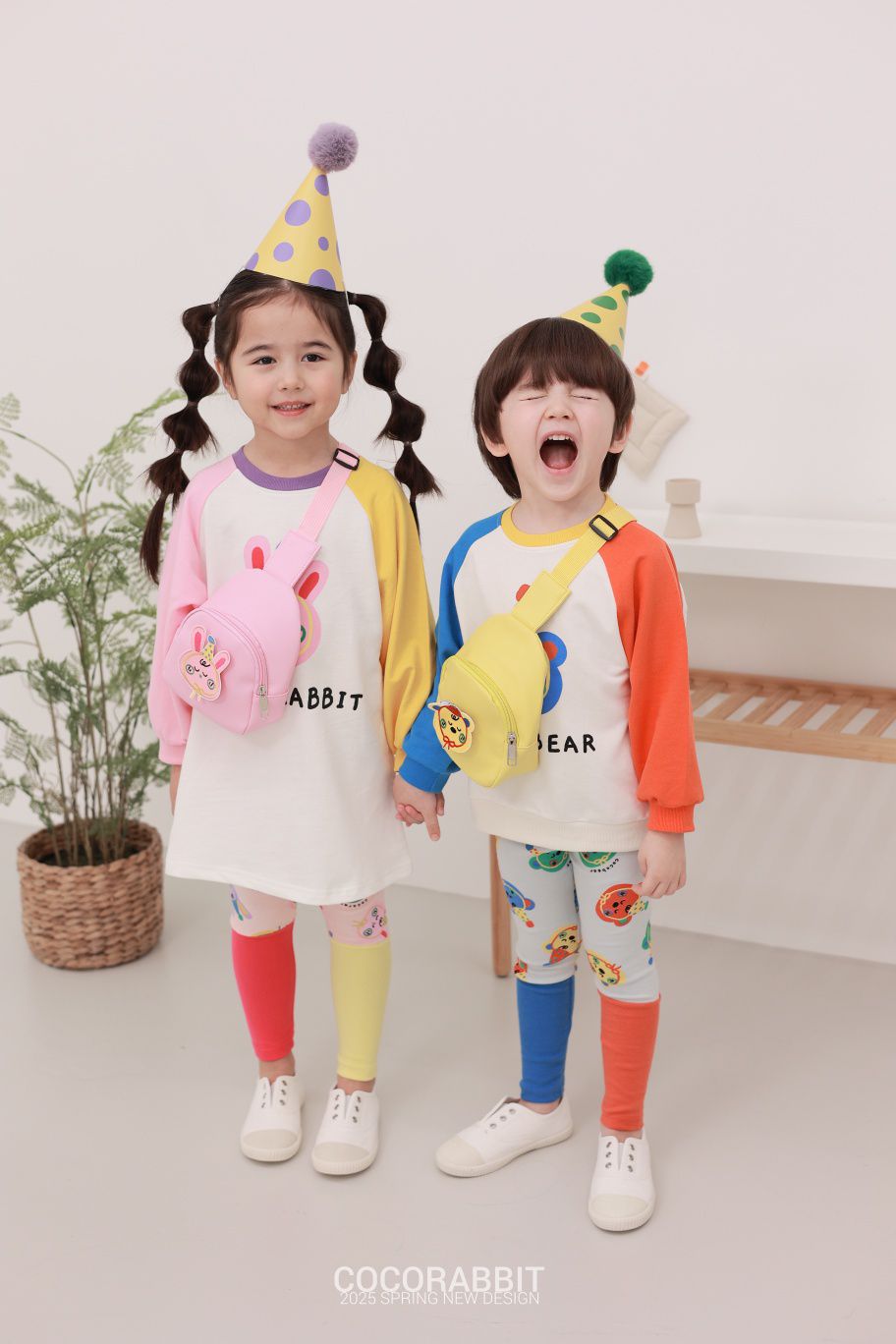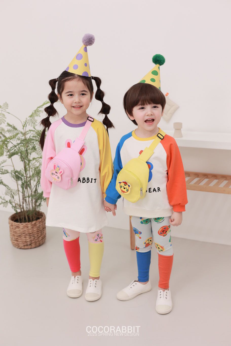 韓國 Coco Rabbit - (附包包)派對兔子撞色袖洋裝-粉兔-粉X黃