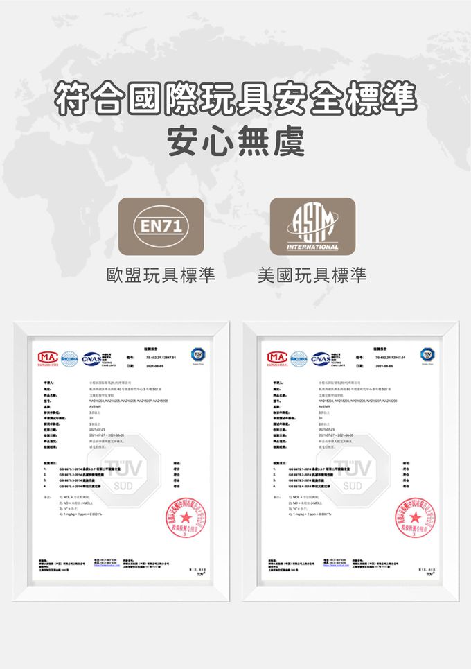 ◎ 符合玩具安全標準:美國 ASTM F963-17 ; 歐盟 EN71 等