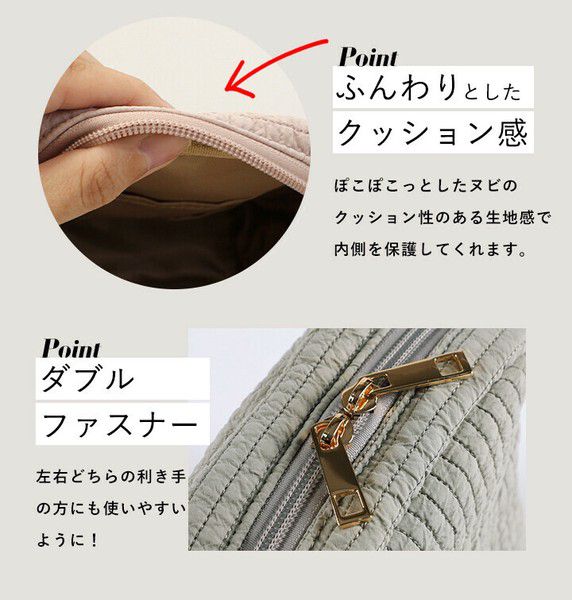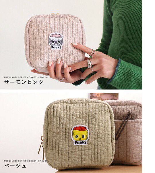 日本 LIZDAYS - Fueki君不易糊 韓式蓬鬆絎縫可站立化妝包-鮭粉