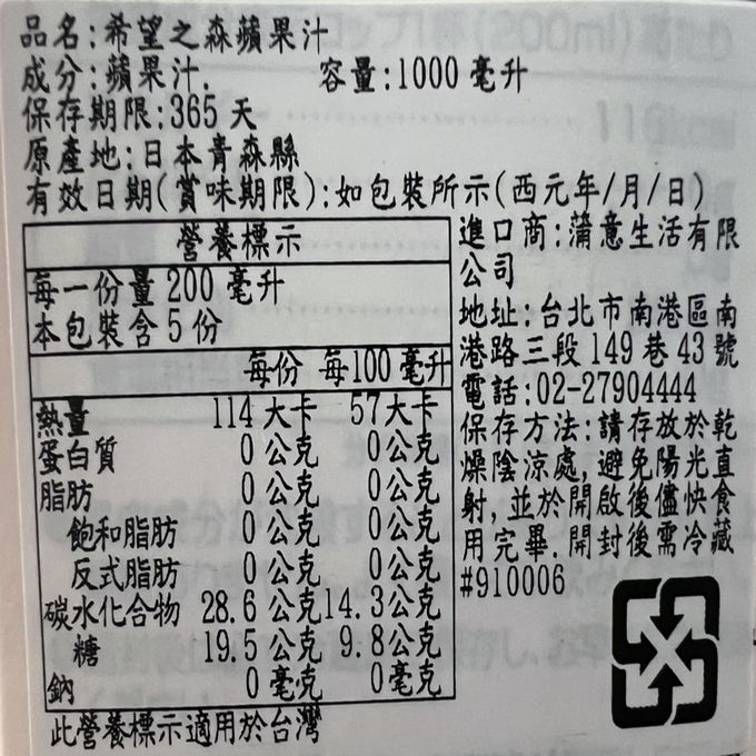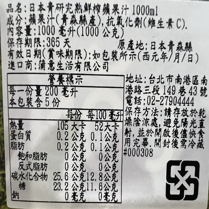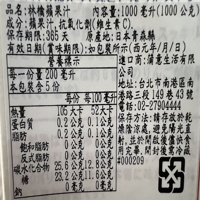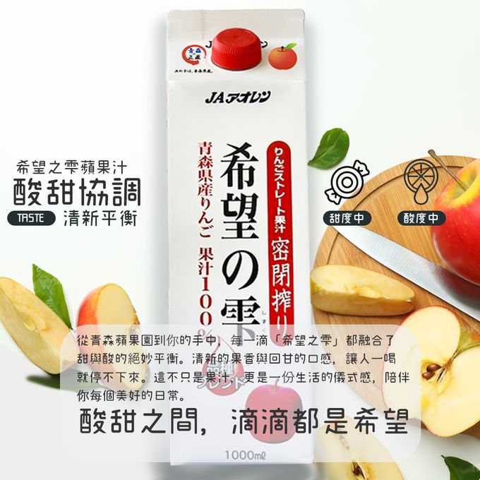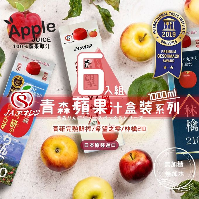 品名:青森蘋果汁盒裝系列 1000mlx6入 (希望之雫/青研完熟鮮榨/林檎210)