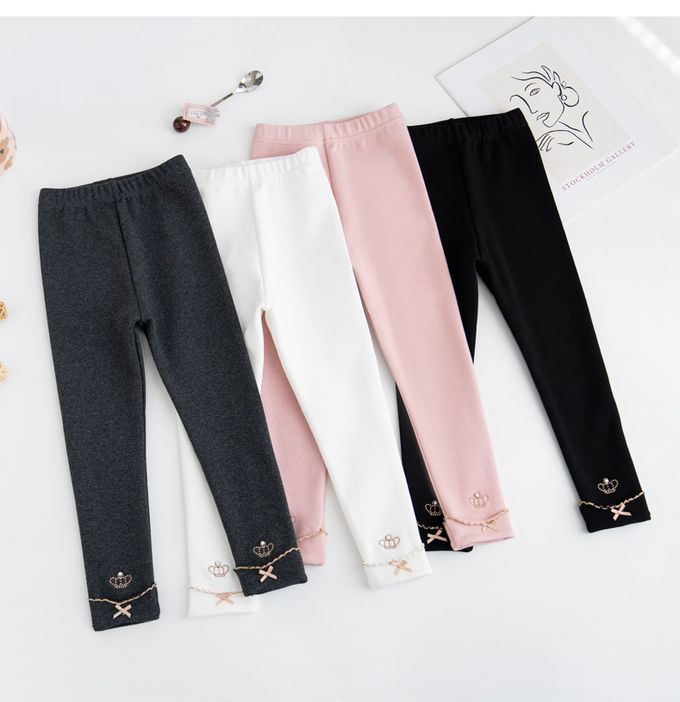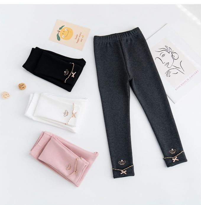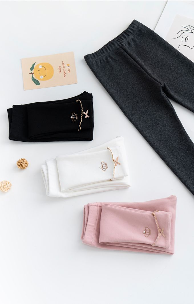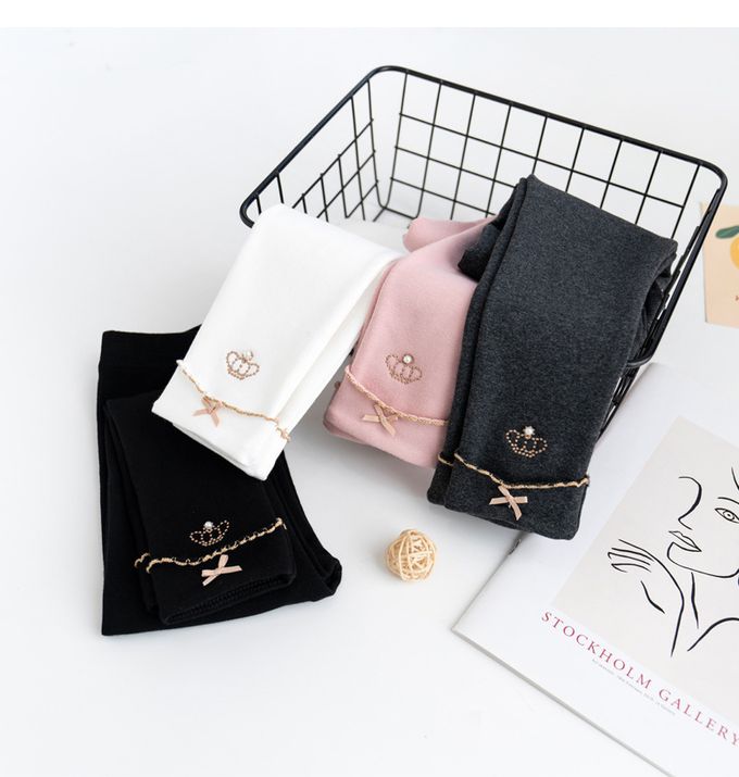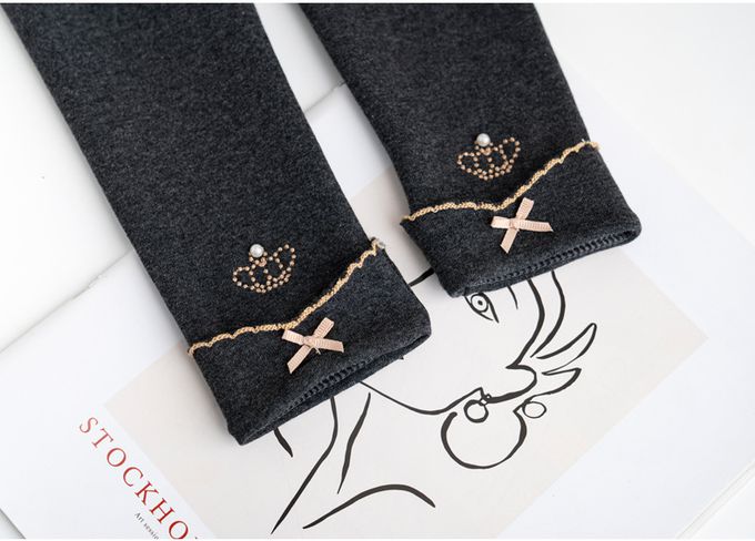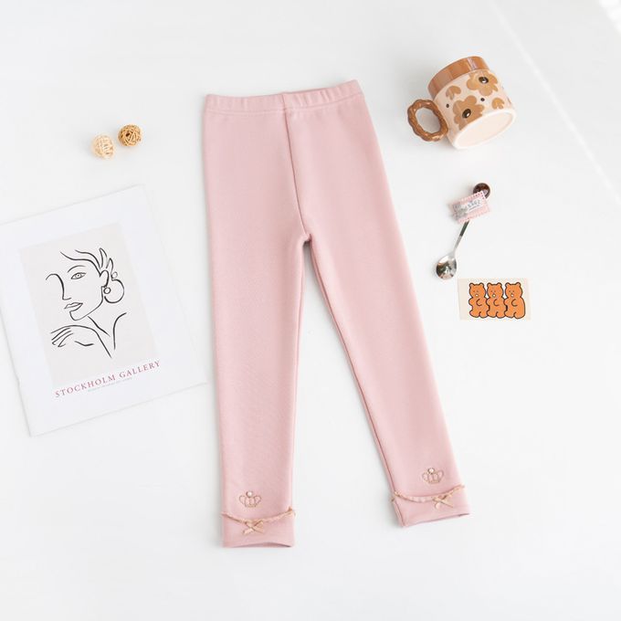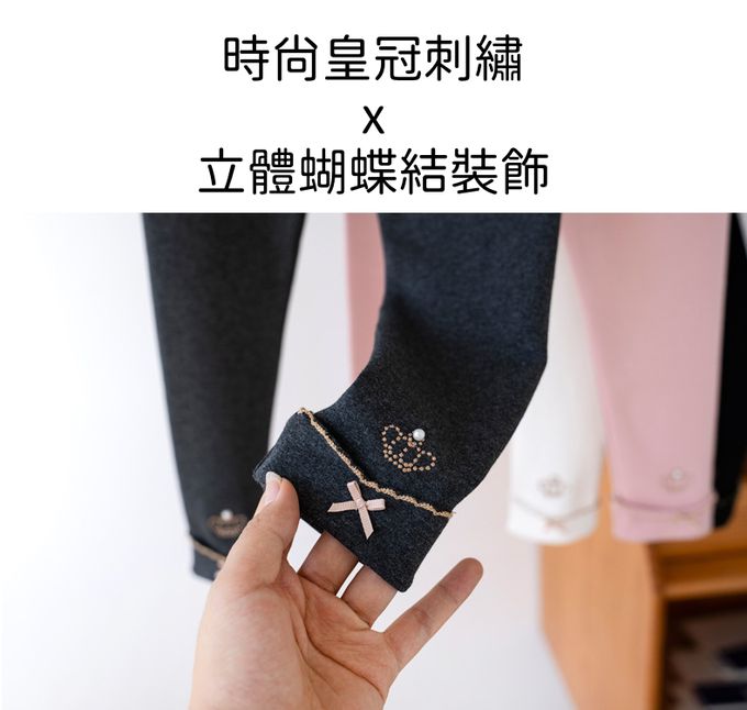 厚棉氣質內搭褲-皇冠蝴蝶結-粉色