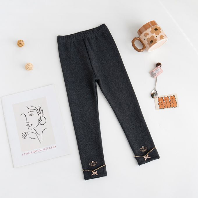 FANMOU - 厚棉氣質內搭褲-蝴蝶結-深灰色