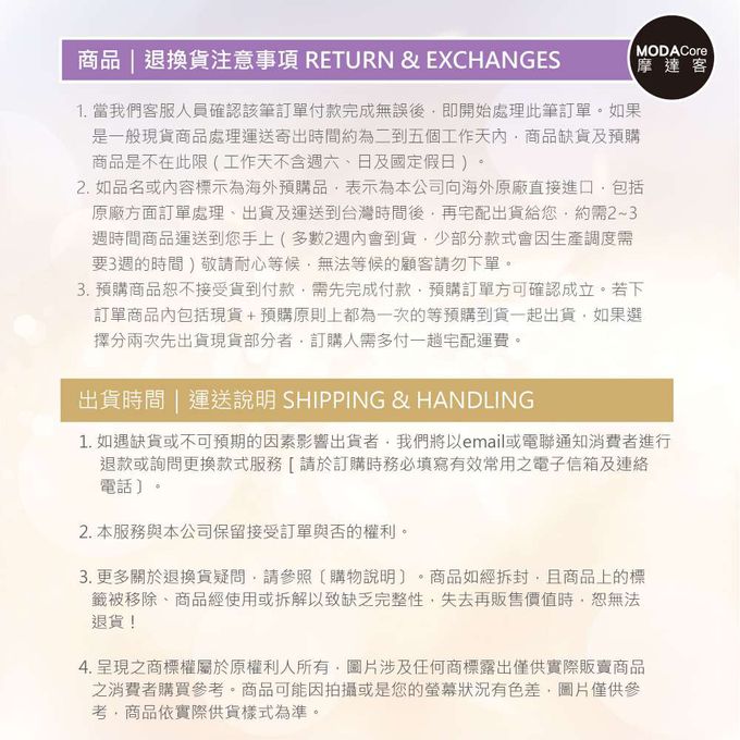 預購商品:預購為海外同步代購,遇缺貨即會通知媽咪並協助取消退款事宜。