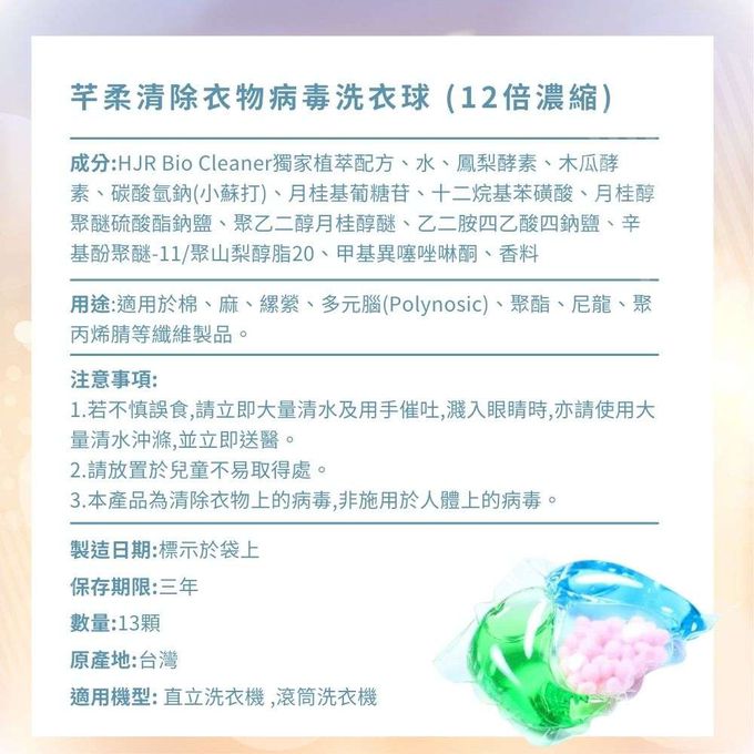 品名:摩達客-芊柔清除衣物病毒洗衣球13入袋裝*10入